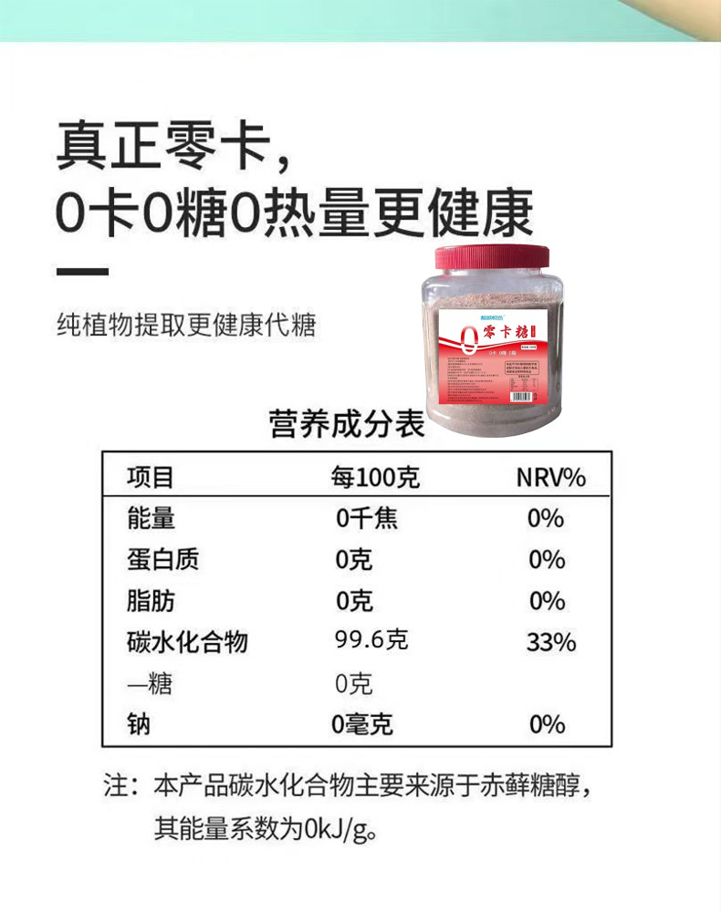 Сахар без калорий со вкусом плода монаха не содержащий гликемических углеводов большая упаковка 500г для домашнего и коммерческого использования