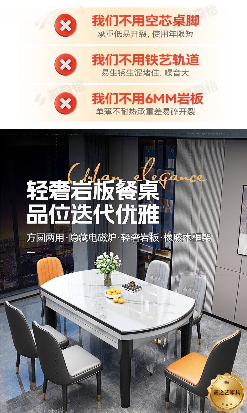 ![]() | Better stability-12mm rock plate-four-track induction cooker model | 1.20m -dining table + 4 (leather chairs) | ¥840.84 / ≈ 10 128 ₽ | 1996 | 6143439123304 | |