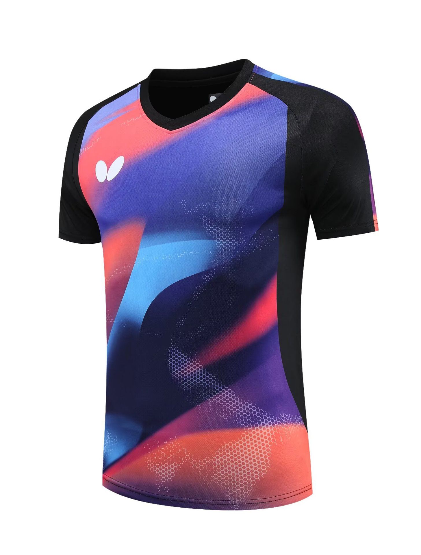 Быстро сохнущая одежда для настольного тенниса Butterfly 2025 года для мужчин и женщин, короткий рукав, детская спортивная форма для тренировок и соревнований с печатью
