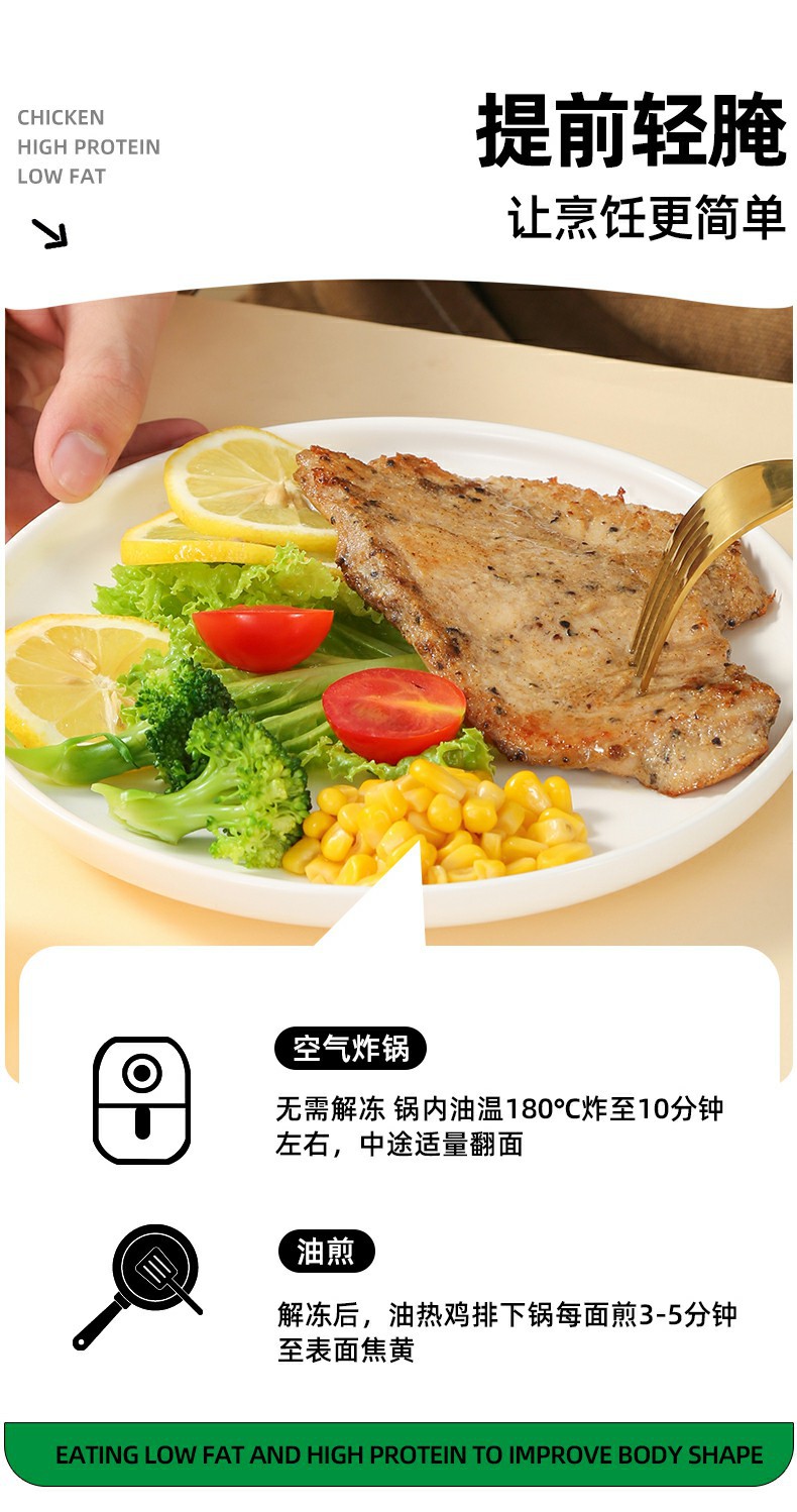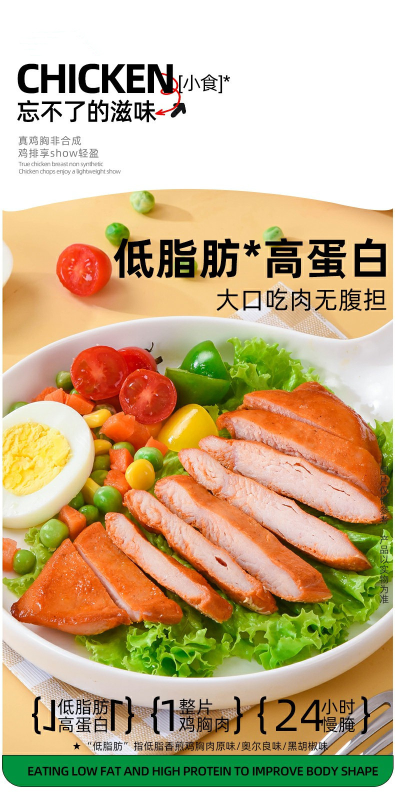 120Г/100Г Куриный стейк Коммерческая оптовая продажа Фитнес завтрак Куриный стейк Низкокалорийный заменитель пищи Куриная грудка Полуфабрикат