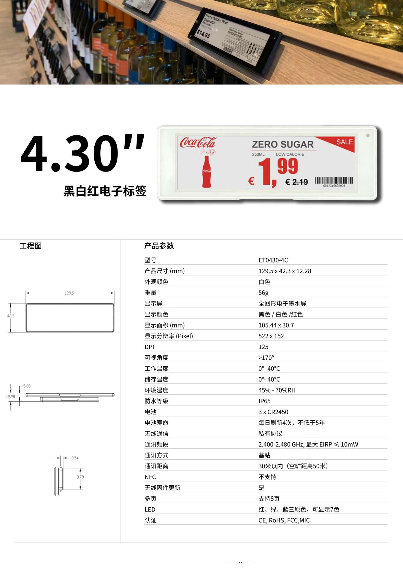 4.3 цифровая этикетка, сетевое исполнение, экран на чернильной основе, цифровая ценовая этикетка, умная этикетка, черно-белая ценовая этикетка для супермаркетов