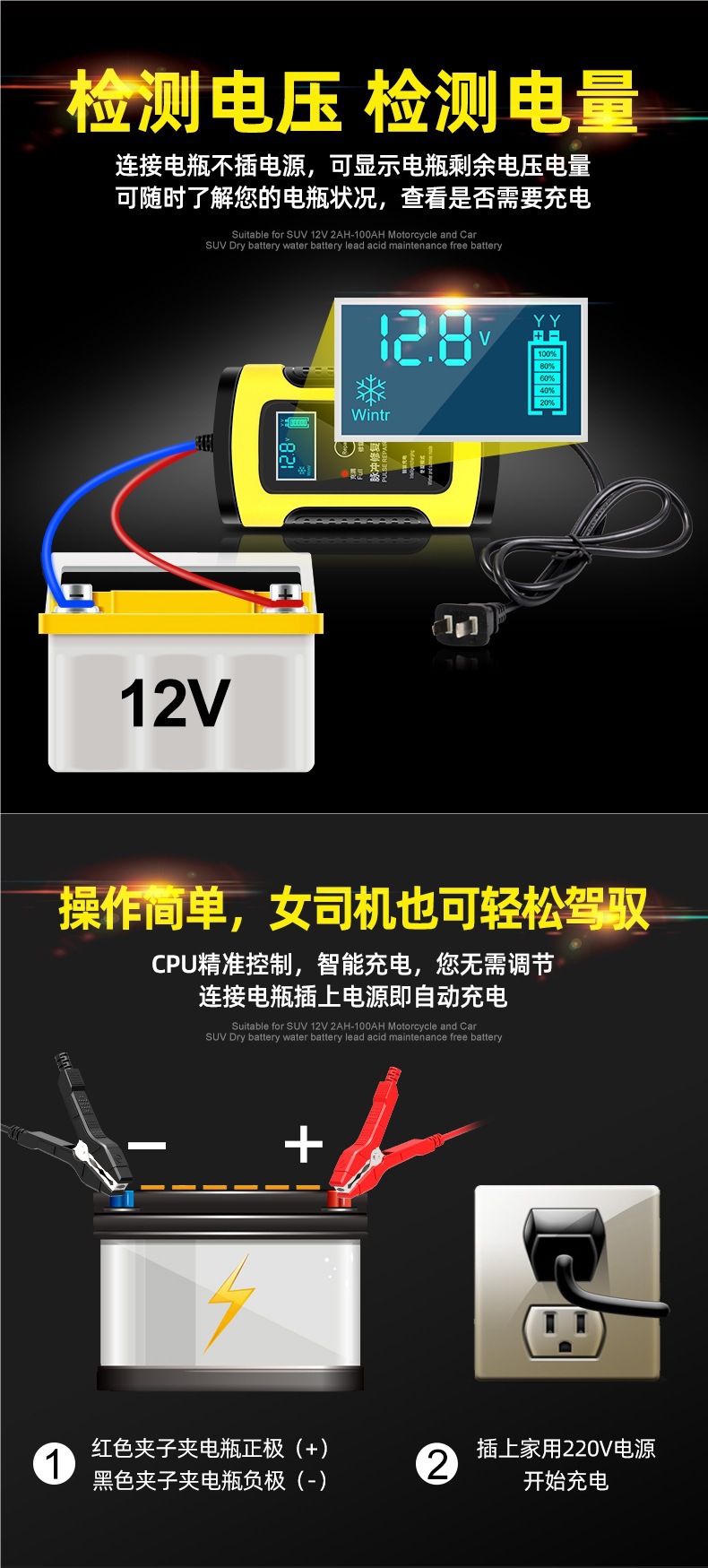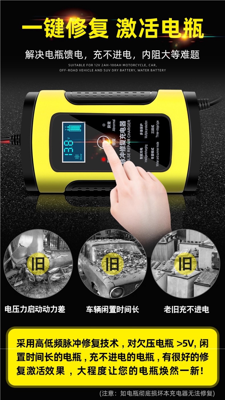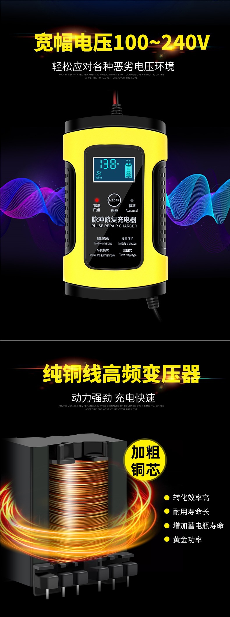 Зарядное устройство для автомобиля 12V24V, полностью интеллектуальное автоматическое восстановление аккумулятора