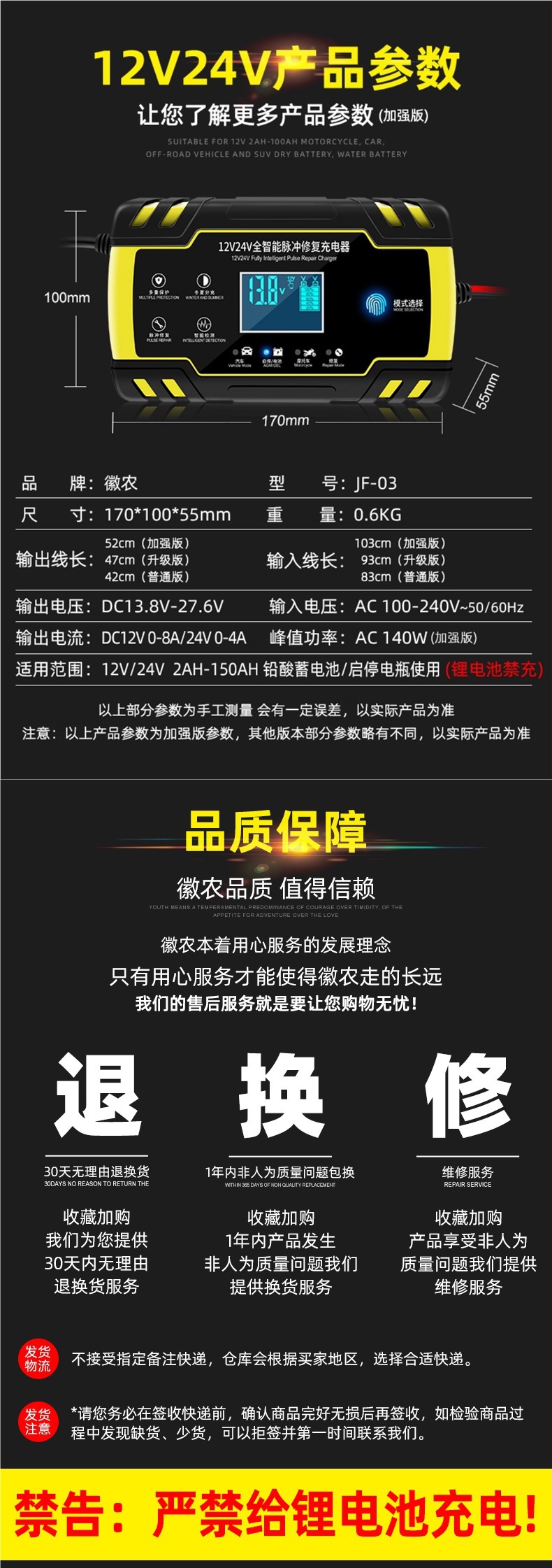 ![]() | 12v24v high-power charger [patented upgraded version] speeds up about 140% [renewed every 3 years] | ¥108.48 / ≈ 1 311 ₽ | 200 | 5979190756886 | |