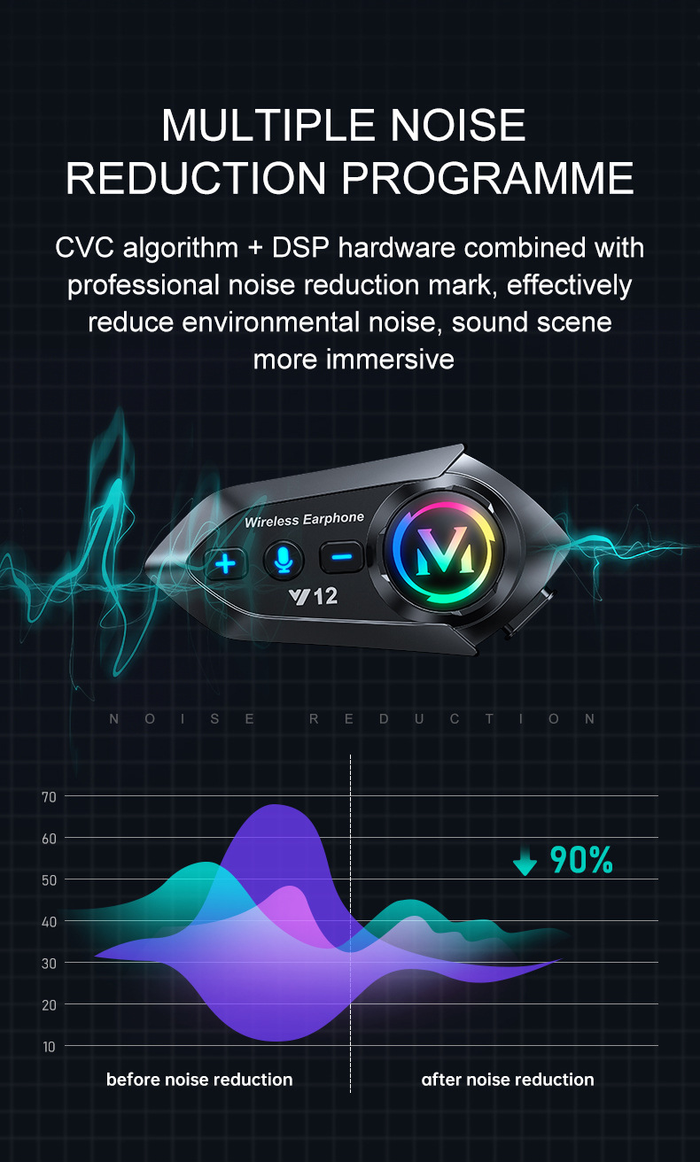 Мотоциклетный шлем Y12 с шумоподавлением, водонепроницаемый, прямые поставки от производителя, полнофункциональные наушники Bluetooth для езды