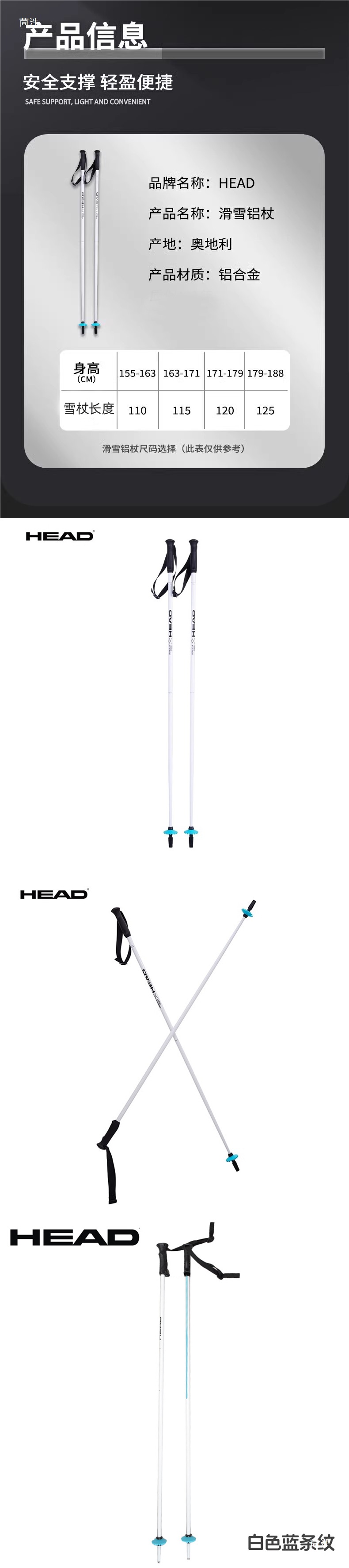 Легкие лыжные палки Head из алюминиево-магниевого сплава для взрослых и детей 100-130 см