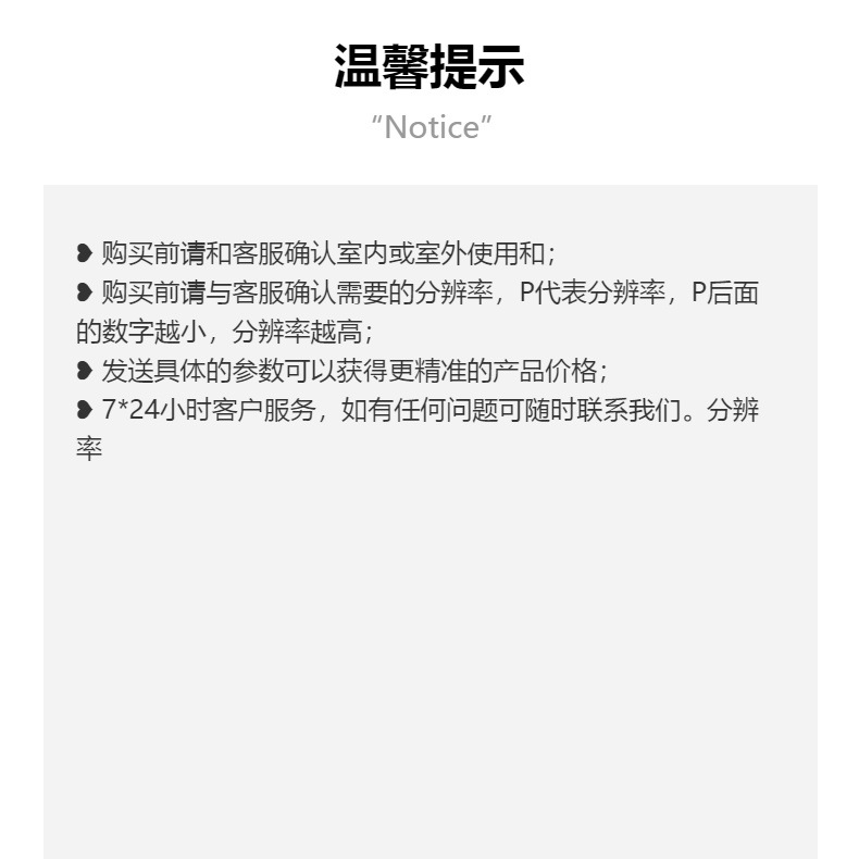 ✅ GOB 模组 + 多分辨率可选:采用高品质 GOB LED 模组,显示清晰细腻、高对比度、色彩还原度高,支持 P1.53/P1.86/P2/P2.5/P3 多种分辨率,按需匹配不同观看距离(近距展示 / 远距离宣传),兼顾画质与成本。