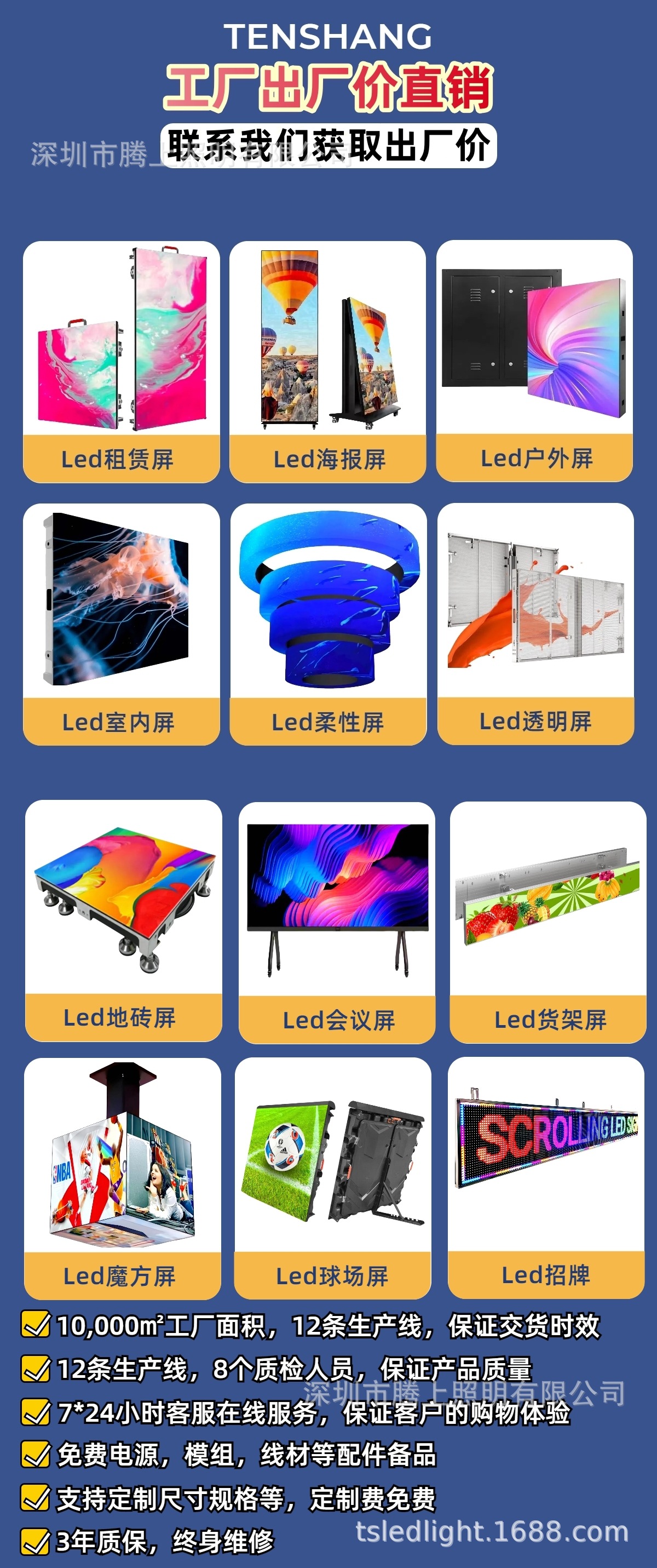 ✅ 工厂直供,批量更划算:TENSHANG 品牌原厂直供,无中间商加价,支持大批量采购议价,常规分辨率现货充足,定制单(尺寸 / LOGO)快速响应,满足经销商铺货、企业批量采购需求。