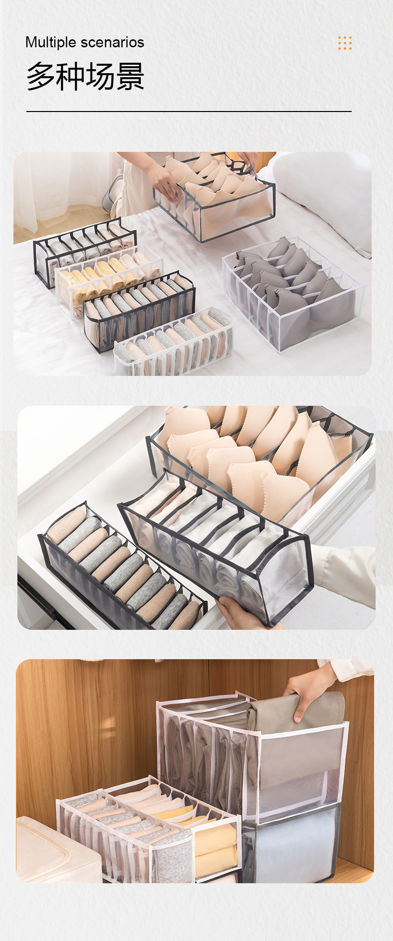 Коробка для хранения нижнего белья, трехвместная коробка для хранения носок и интимных вещей, разделитель для ящика гардероба и отделений для одежды и брюк