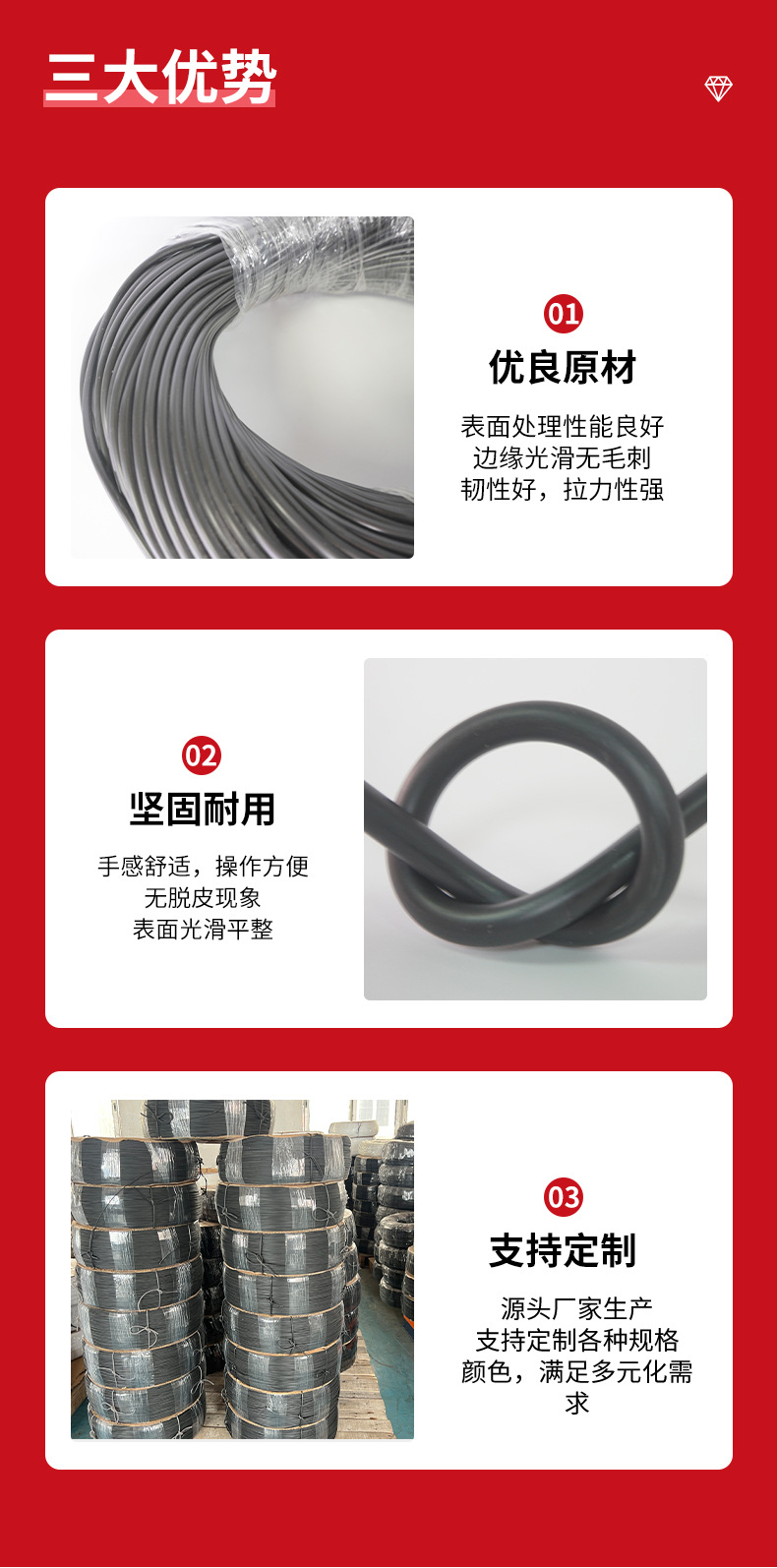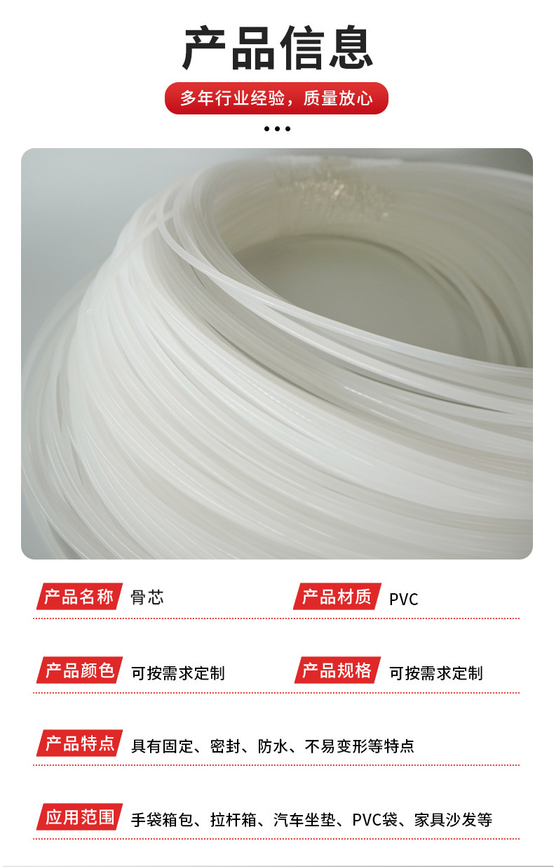 PE圆骨芯有:软、中硬、硬,三种硬度,建议拿样确认好软硬度再下单