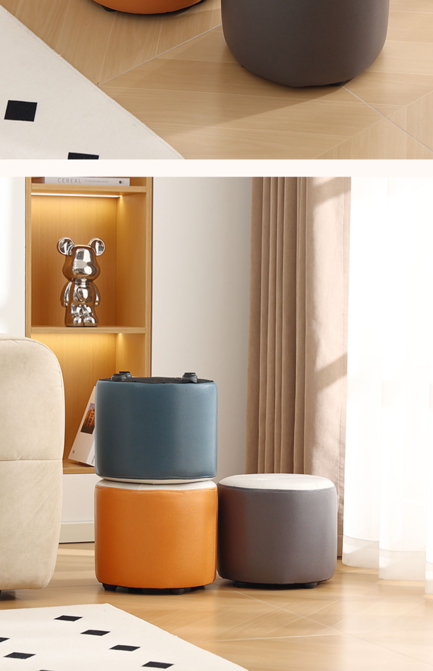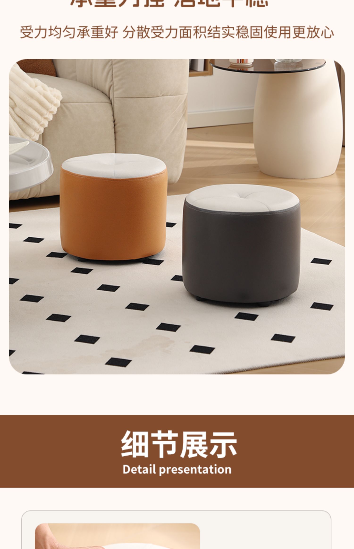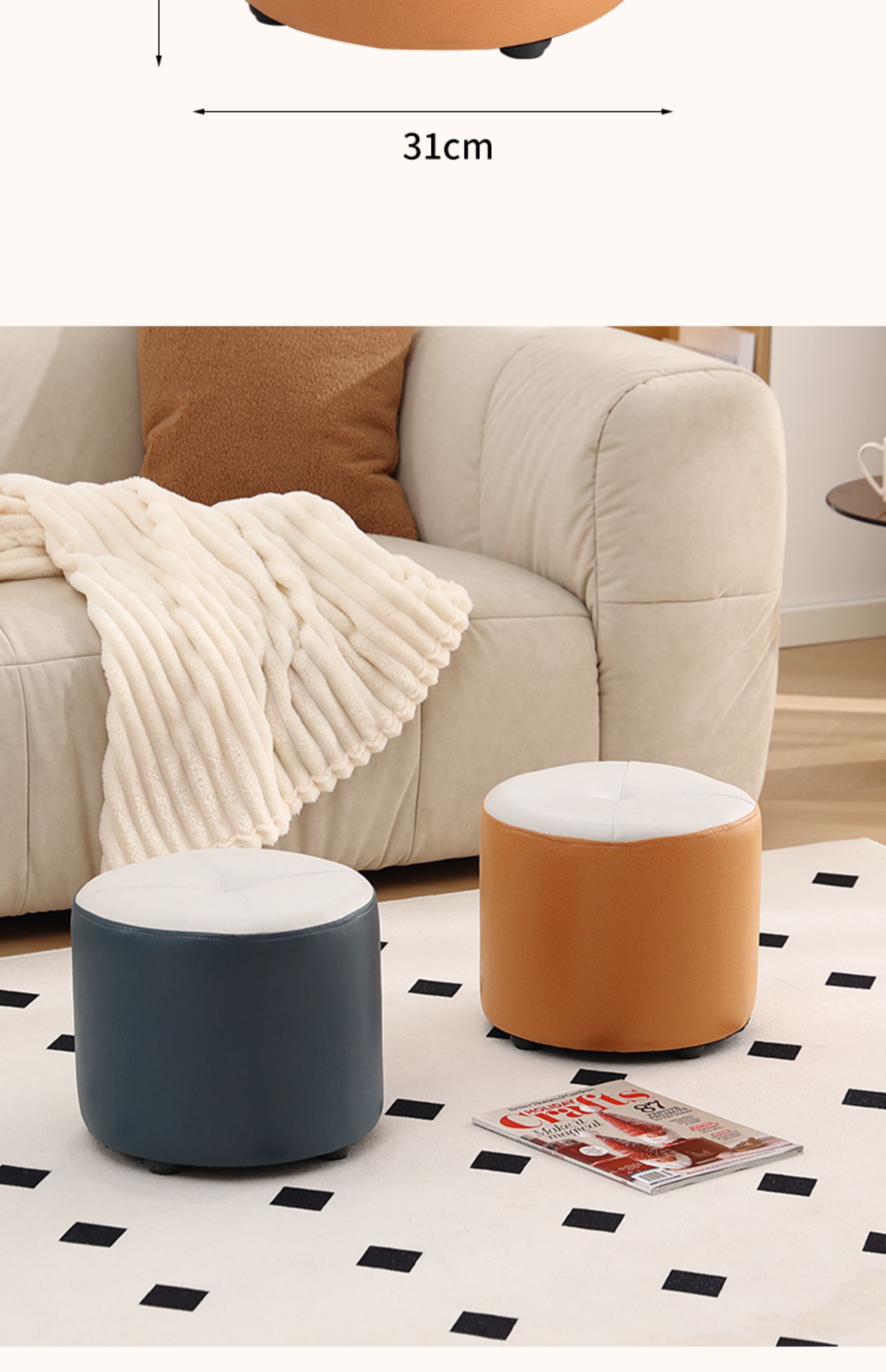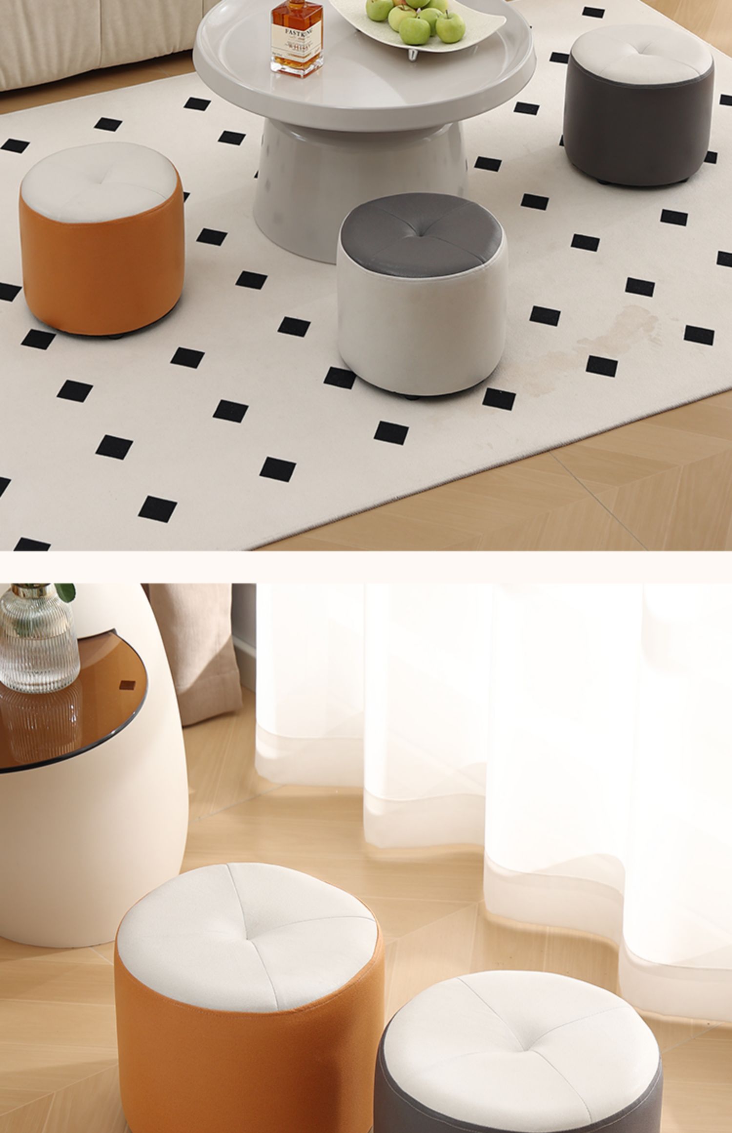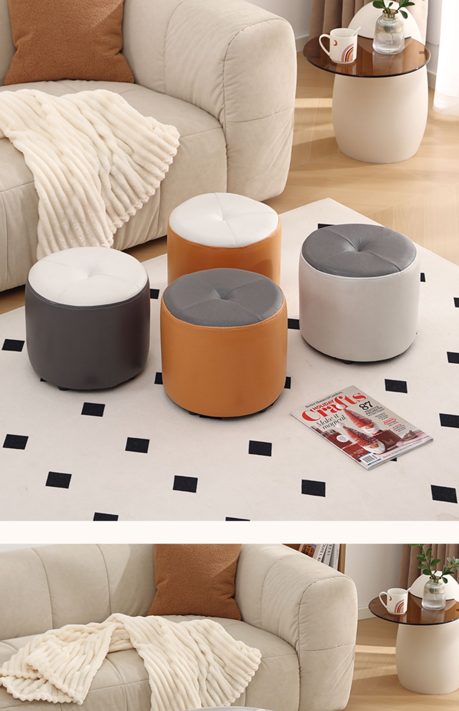 Низкий табурет из массива дерева для дома, табурет для смены обуви, кожаный табурет, легкий люксовый пуф для гостиной, модный маленький табурет, круглый столик