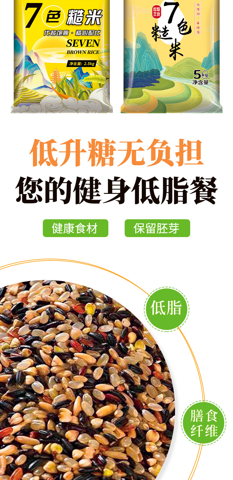 Семь цветов коричневого риса 10кг-0.5кг, вакуумная упаковка, новый рис с северо-востока, фитнес, низкокалорийные цельные зерна, оптовая продажа