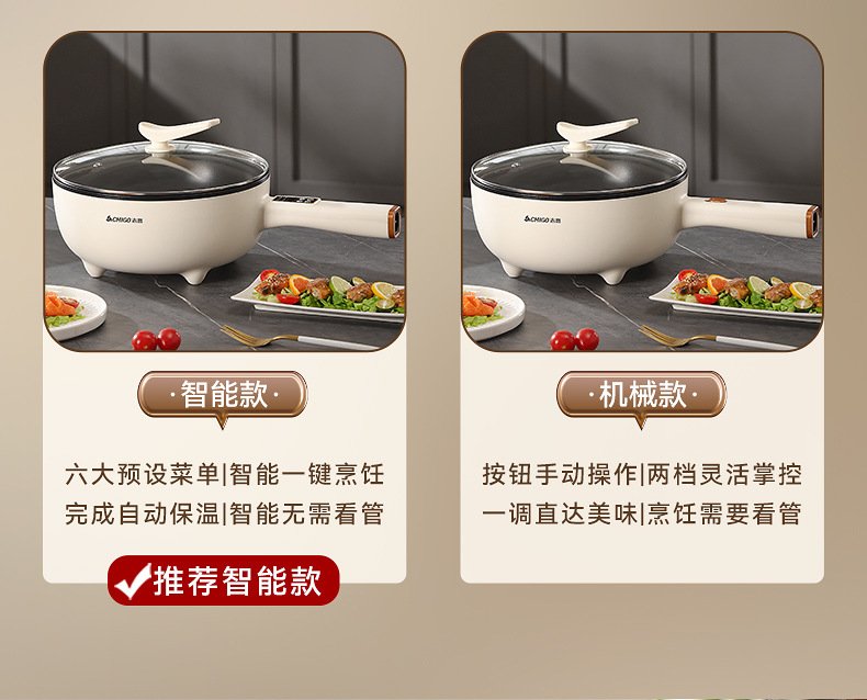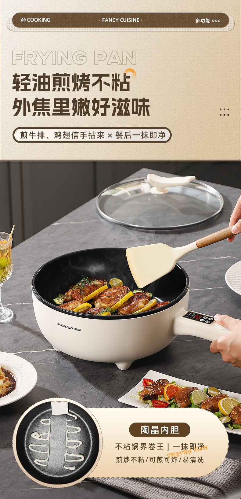 Электрическая сковорода Chigo для жарки и варки все-в-одном многофункциональная антипригарная кастрюля для общежития умная модель