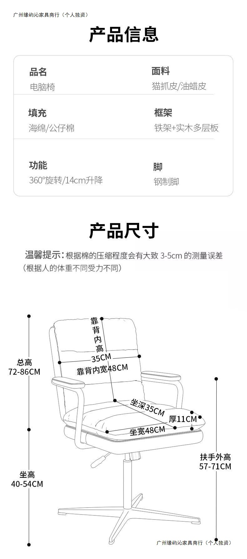 Офисный стул для сидения, стул для учебы в спальне, компьютерный стул, комфортный вращающийся стул с легким люксом