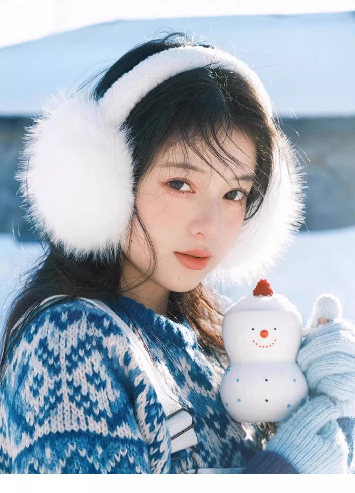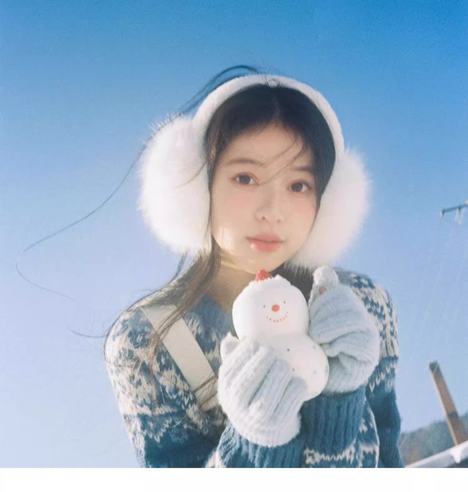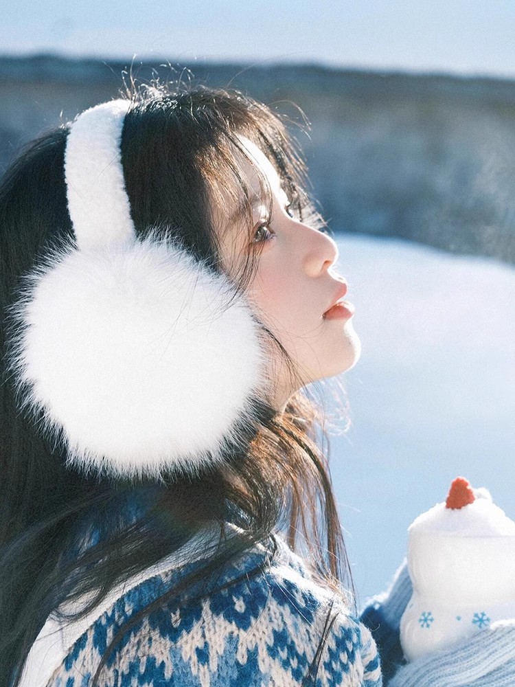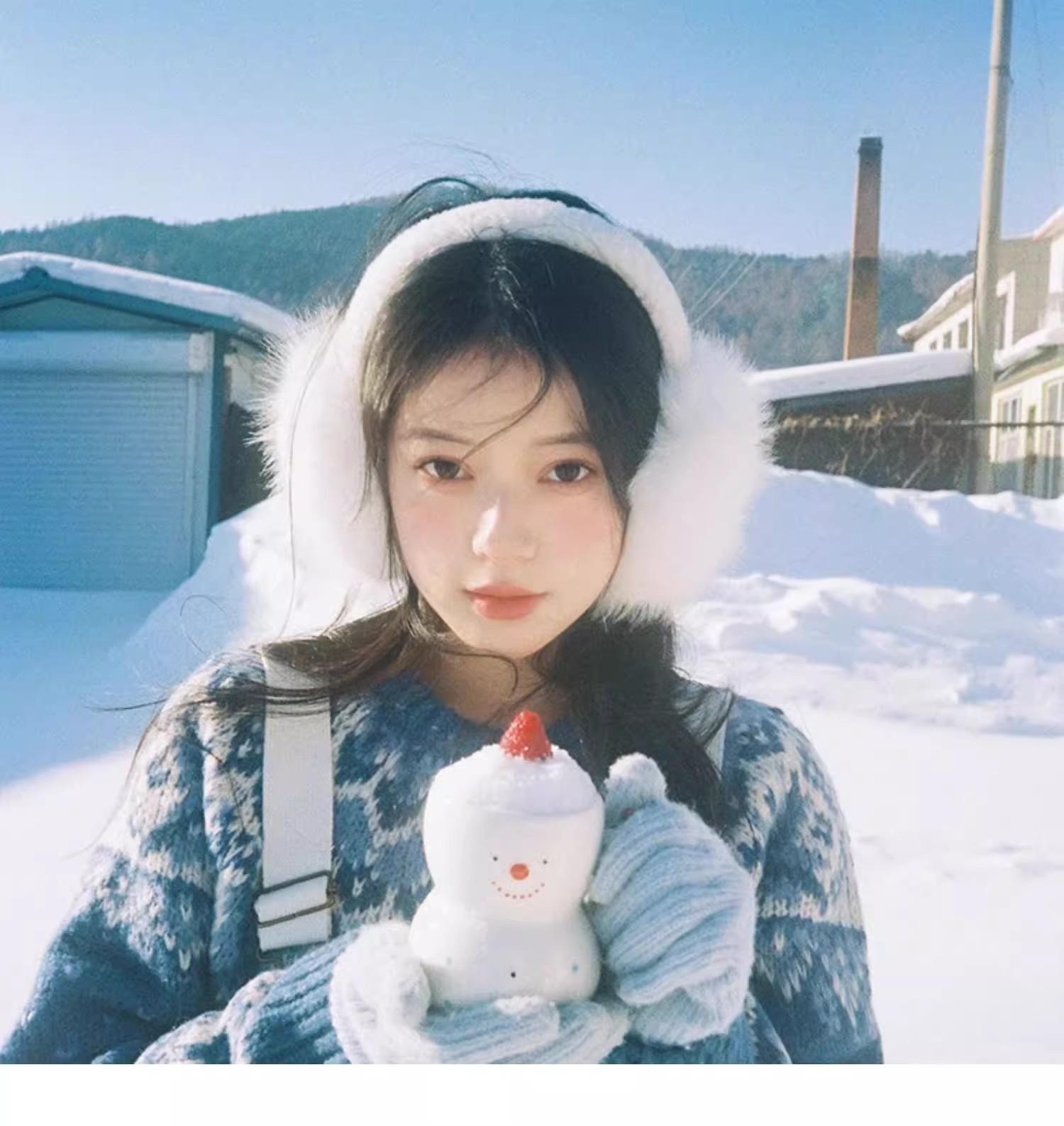Пуховые наушники для женщин на зиму, милые белые теплые наушники против мороза, наушники, универсальные наушники