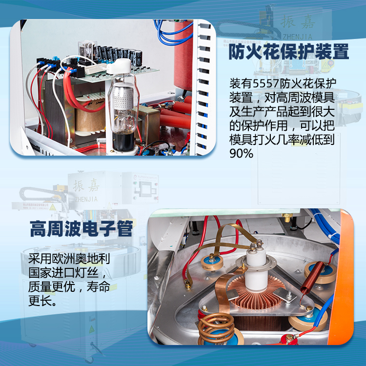 ①、机械手自动取料减少操作人员,代替了人工, 全自动带机械手高周波机工作效率比普通机高一半,效率高,产量稳定,不会因变动操作人员而使产量降低。