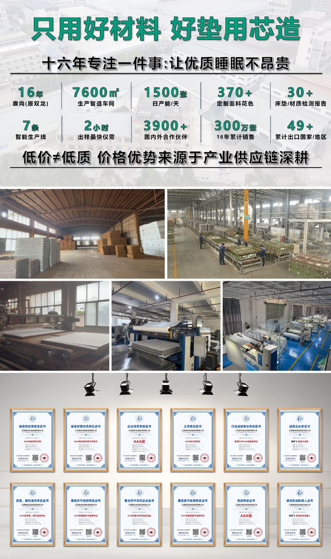 从独立袋装弹簧到环保乳胶,每张床垫历经300+工序与72小时测试,交付的不只是产品,更是安���睡眠的承诺。全球13000+家庭与1200+酒店的选择,见证我们16年品质坚持。