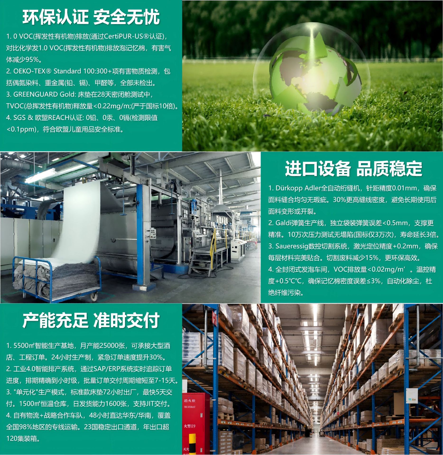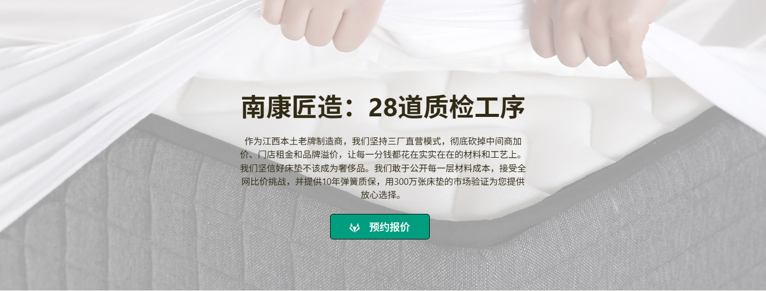 “我们每张床垫都经过12道严苛检测流程,出具国际认可的检测报告,涵盖甲醛释放量、耐久性、支撑性等28项关键指标,用看得见的科学数据守护您的每一夜安眠。"(完整报告请咨询客服)