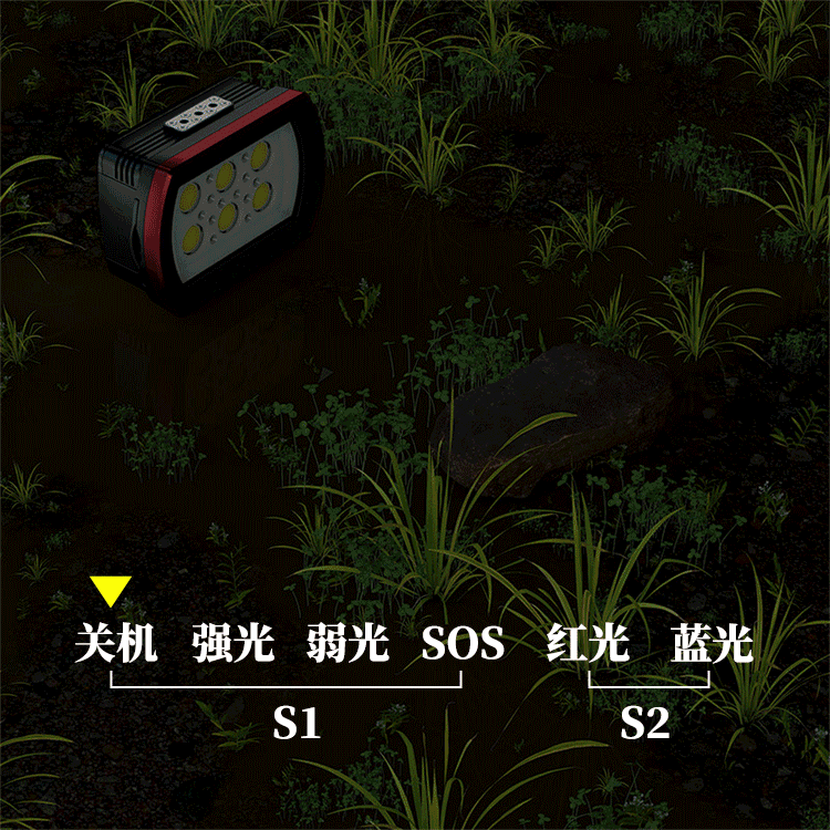 灯光模式:强光/中亮/弱光/SOS
