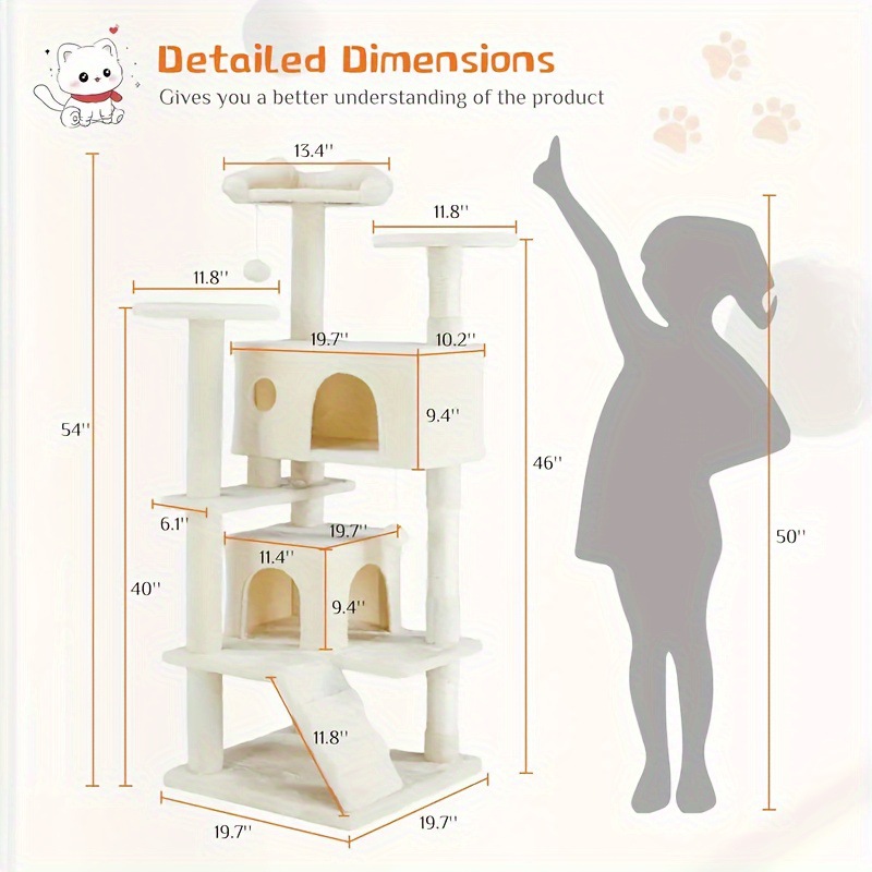2026 Новый кросс-бордерный дропшиппинг кошачья башня для игр в помещении высотой 54 дюйма