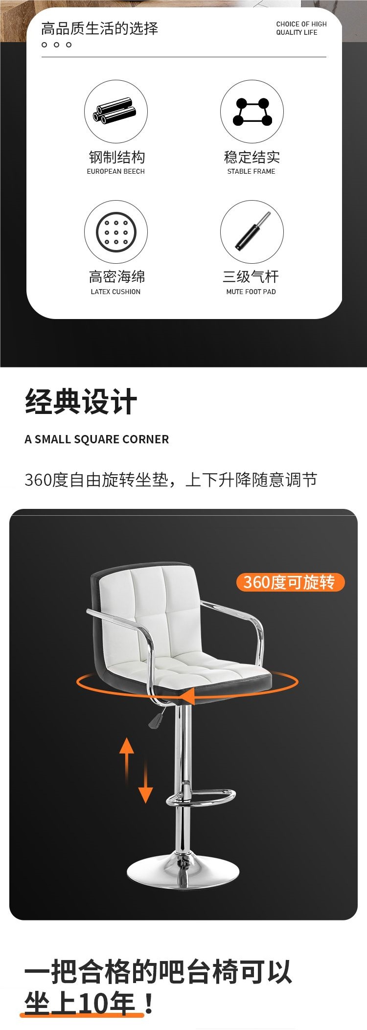 Барный стул для домашнего использования, простой и удобный, вращающийся и регулируемый по высоте, современный высокий стул со спинкой