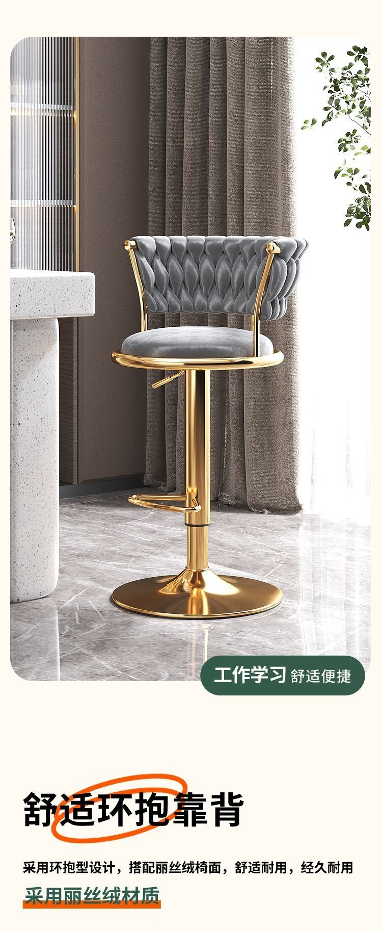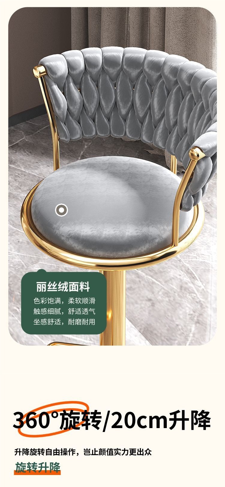Барный стул с повышенным табуретом, регулируемая высота, легкая роскошная спинка, модный высококачественный стул для дома, оптовая продажа стула интернет-знаменитостей