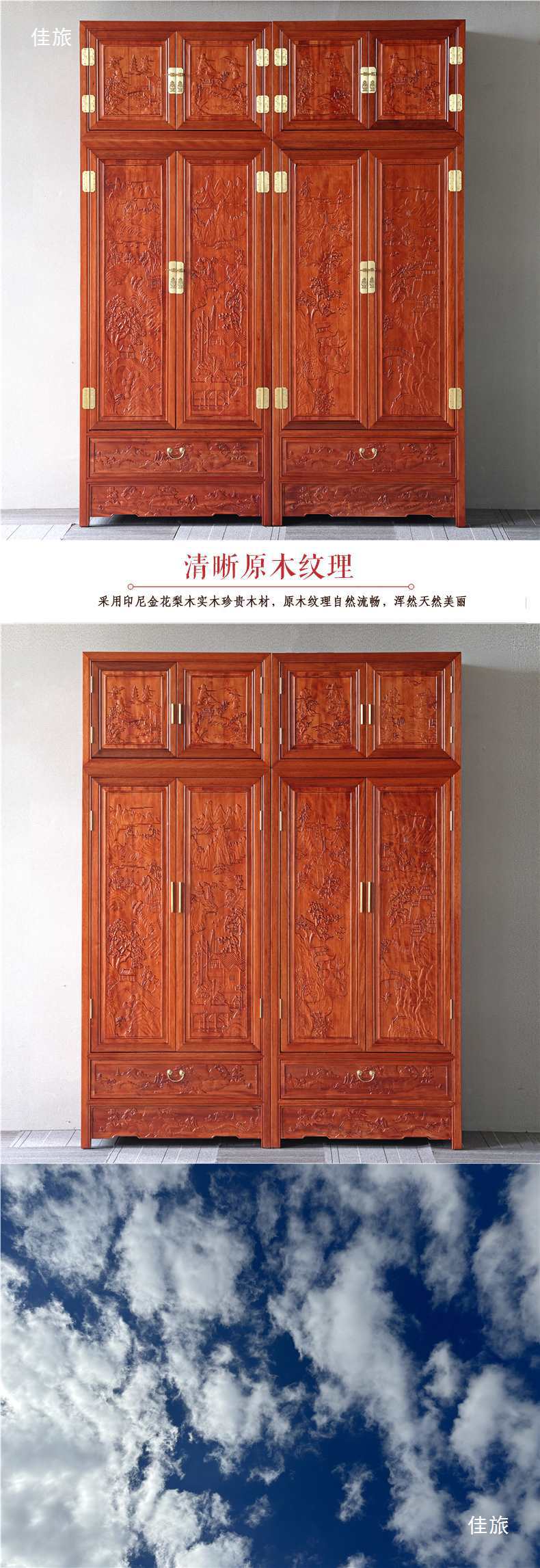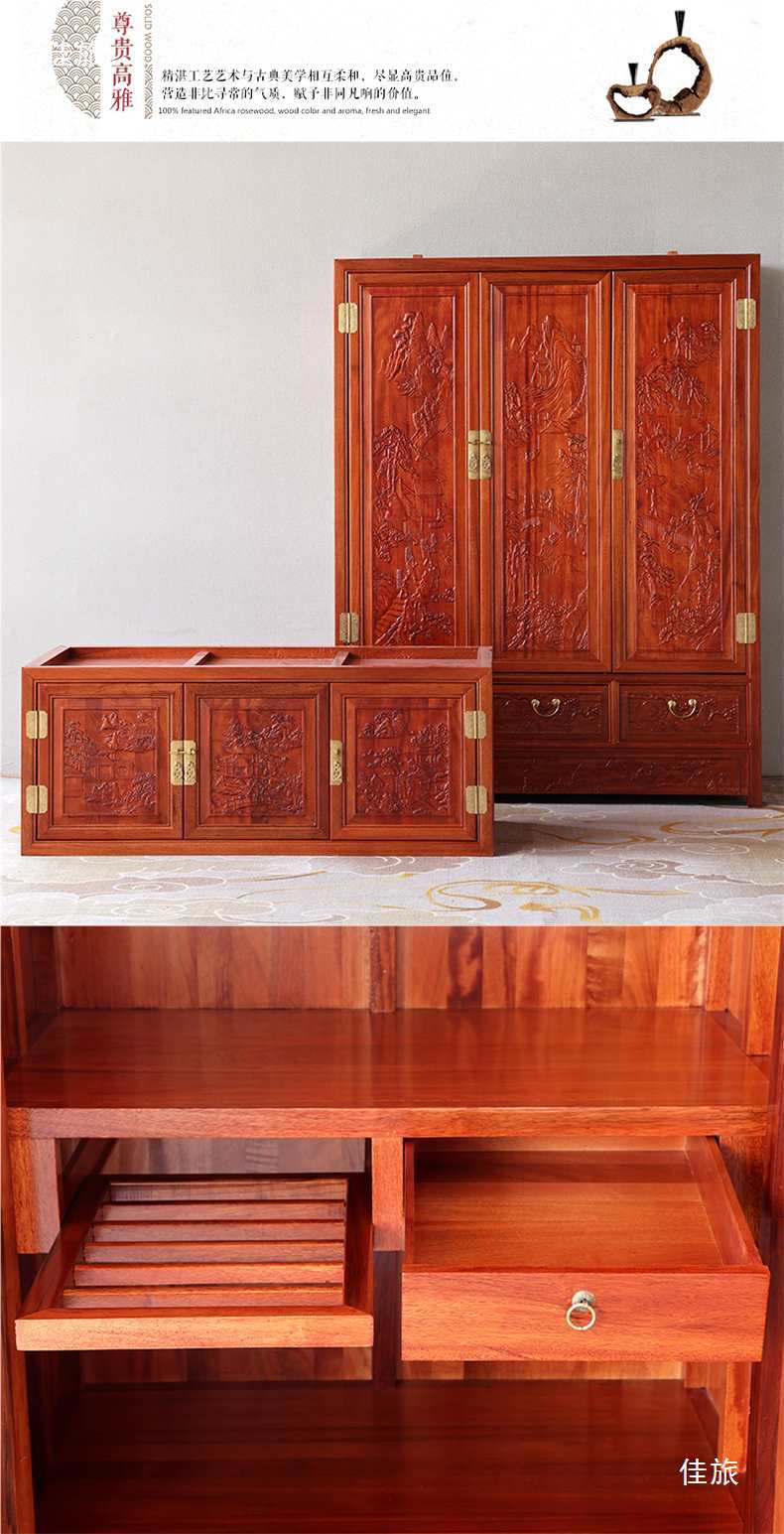 Новый китайский стиль, большой шкаф из массива дерева с четырьмя дверями, резной шкаф для одежды и головных уборов, золотое розовое дерево, верхний шкаф с 2, 3 или 4 дверями