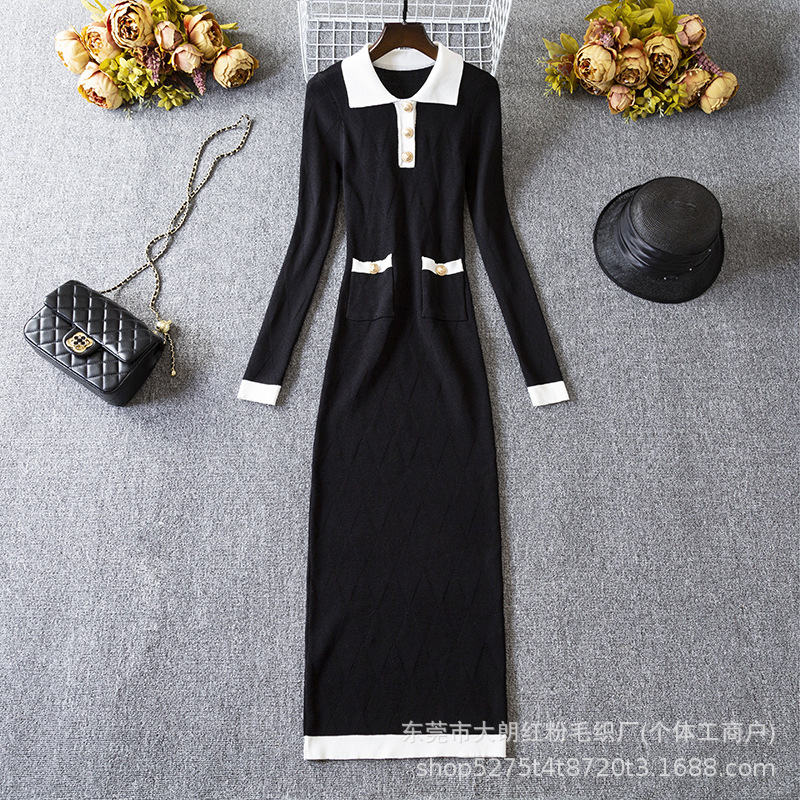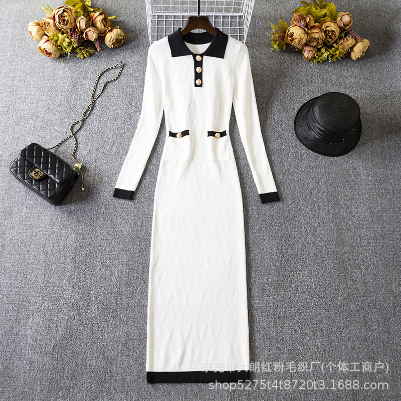 осень и зима 2025 New knitted long-sleeved sweater dress