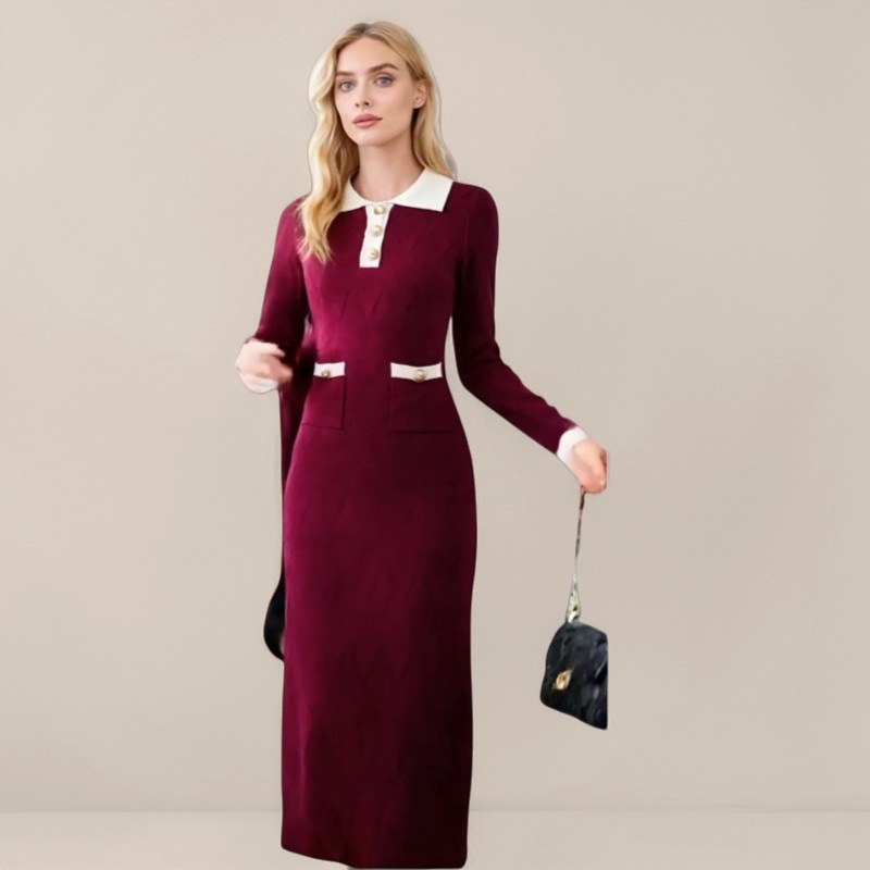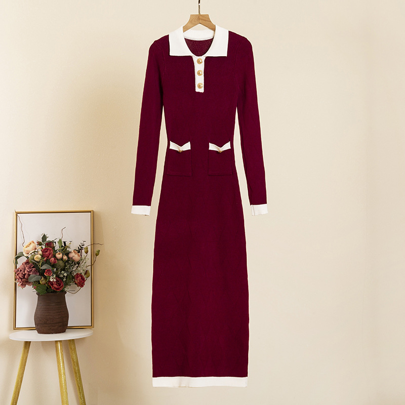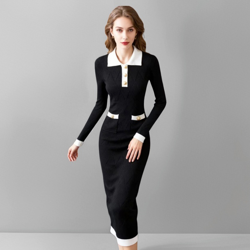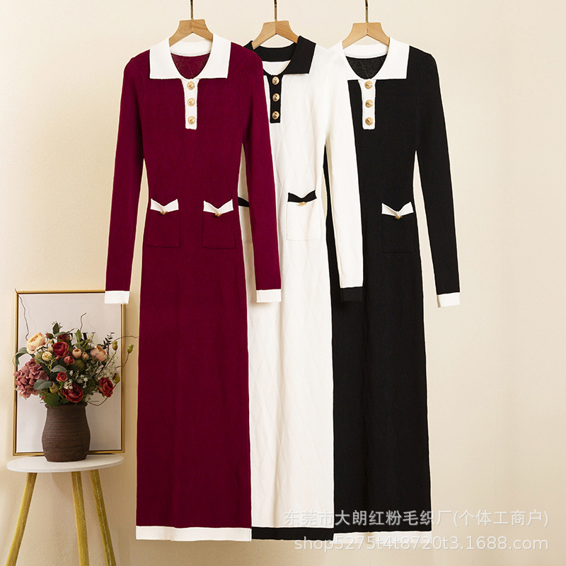 кросс-бордерный поиск фабрик Ready-to-ship european bestseller: collared knit maxi dress