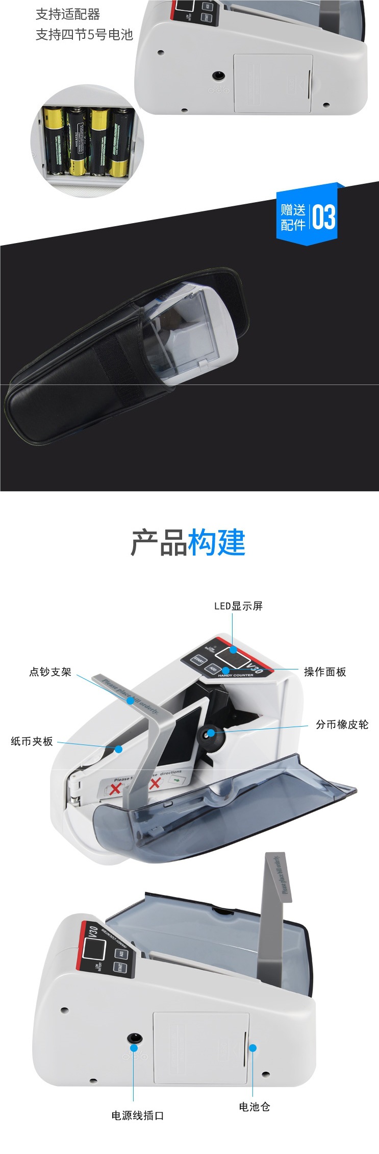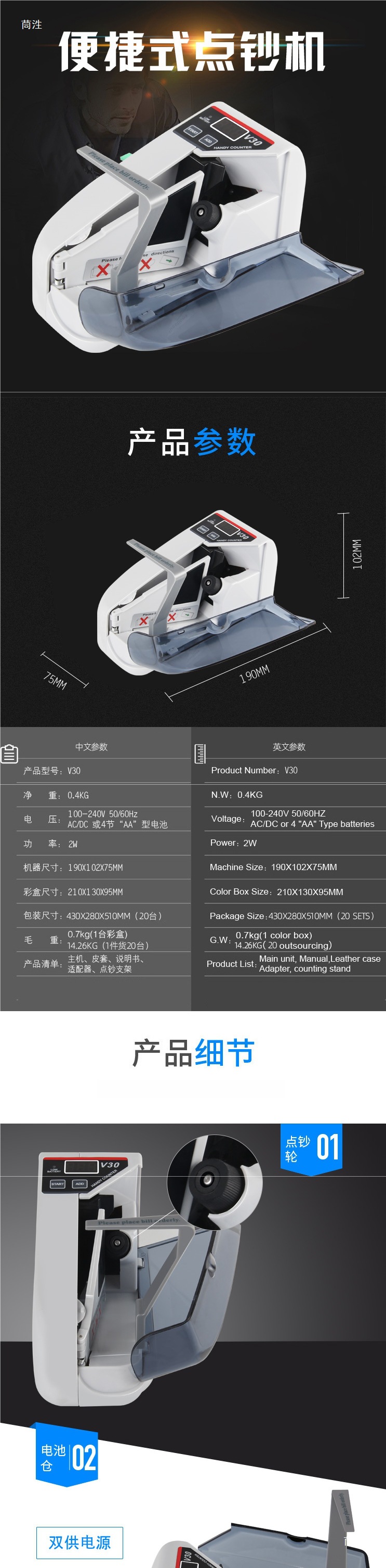 V40 компактная мини-портативная многонациональная машина для подсчета банкнот, работа от сети и батареи