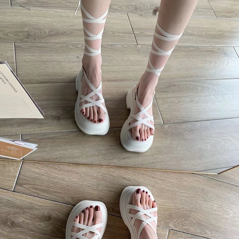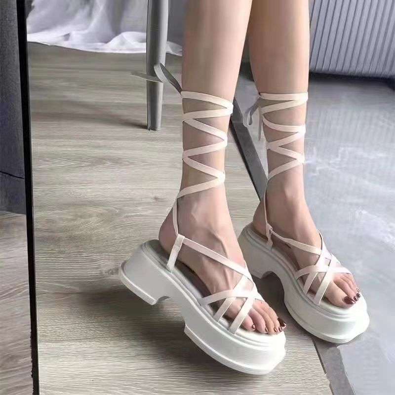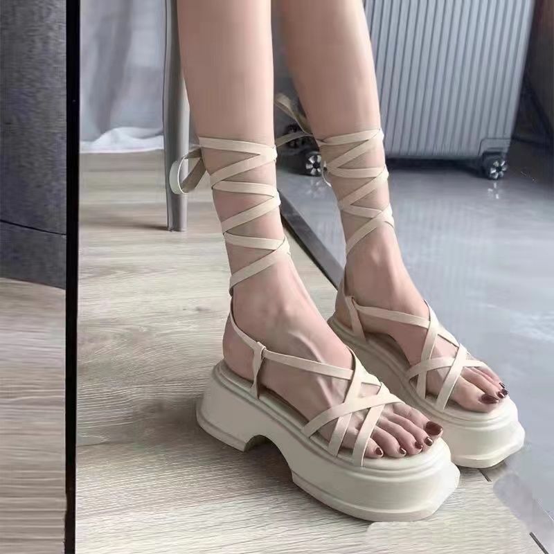 Модные кросс-ремешковые сандалии для женщин 2025 лето новые корейские универсальные с толстой подошвой римские туфли