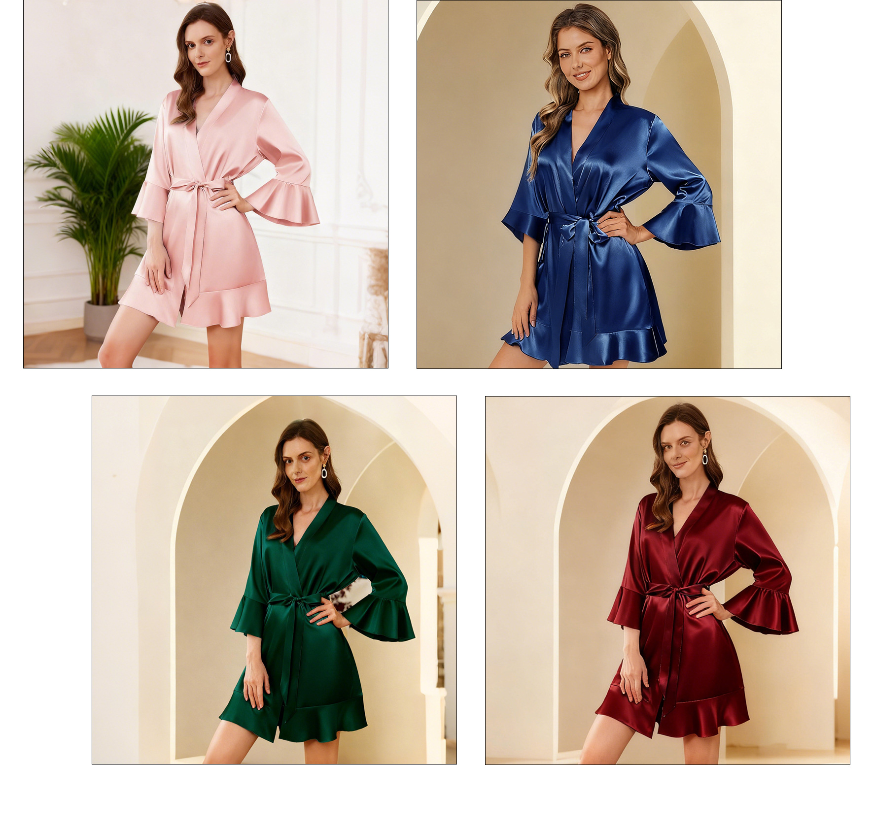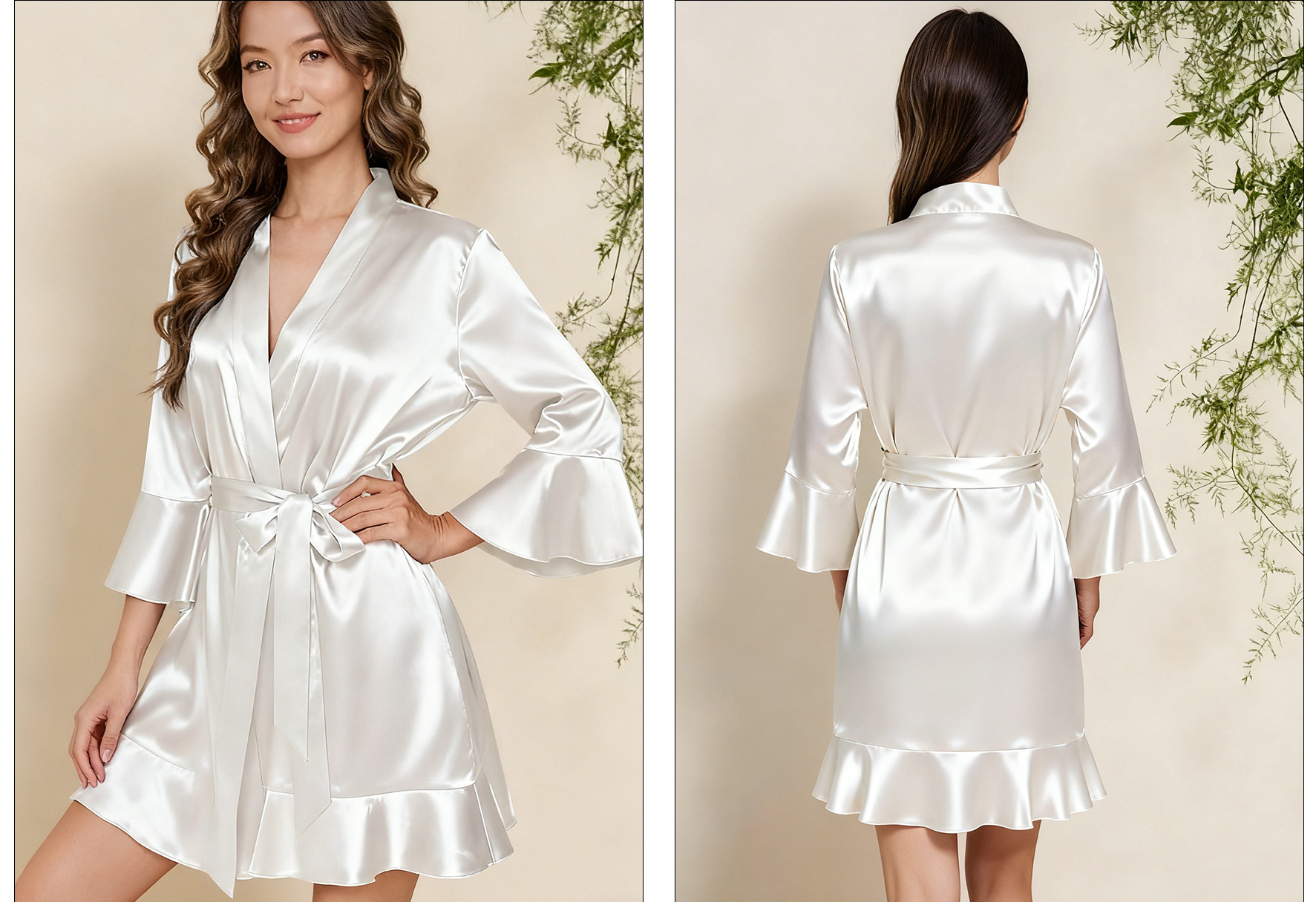 Кросс-бодерная женская шелковая ночная сорочка с рюшами для невесты, свадебный макияж, тонкий кардиган, халат невесты, платье для подруги