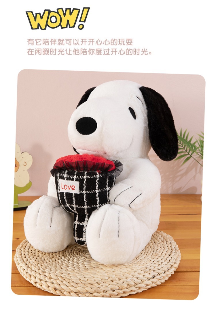 Новая плюшевая игрушка Снупи, обнимающая цветы, кукла Снупи на День святого Валентина, подарок для девочек