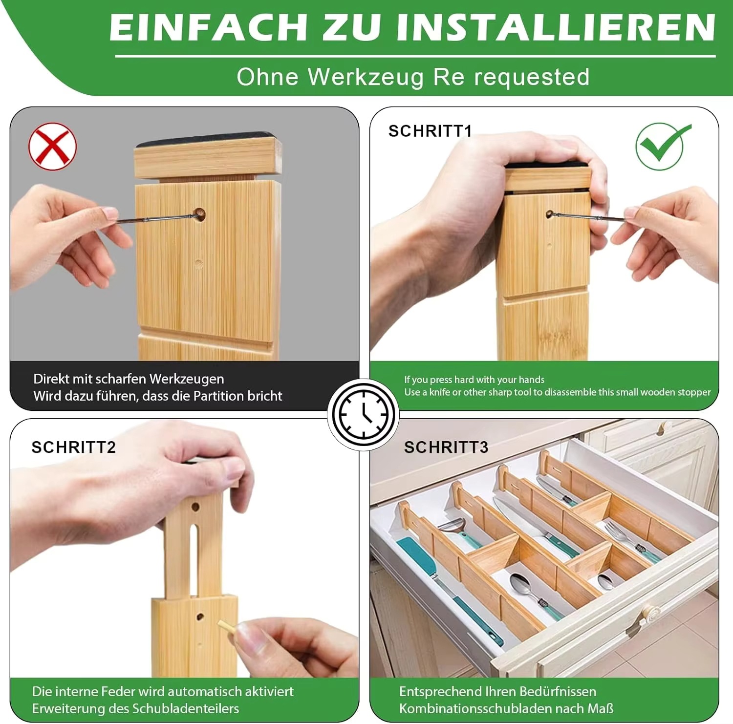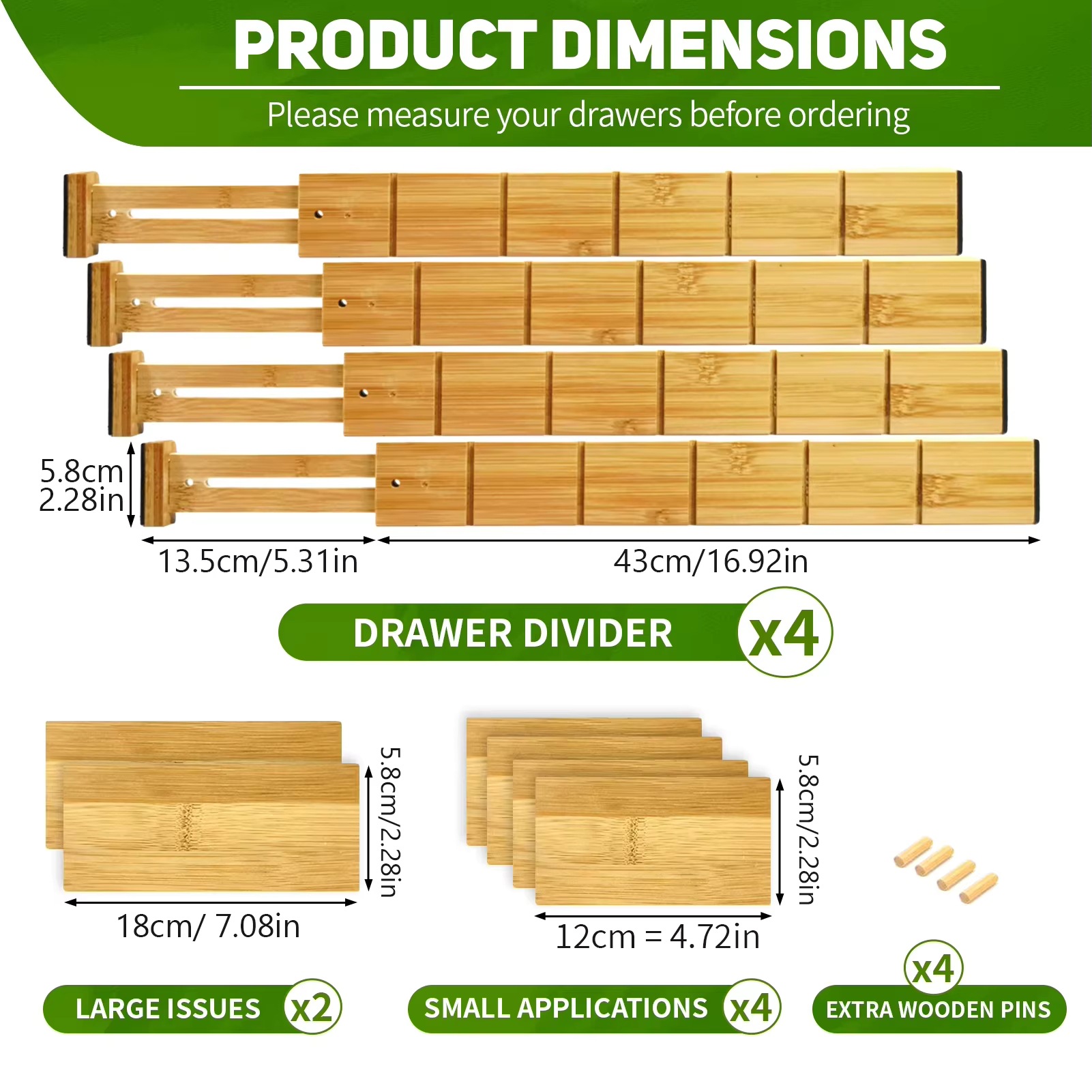 Сет из 4-х раздвижных бамбуковых разделителей для ящиков