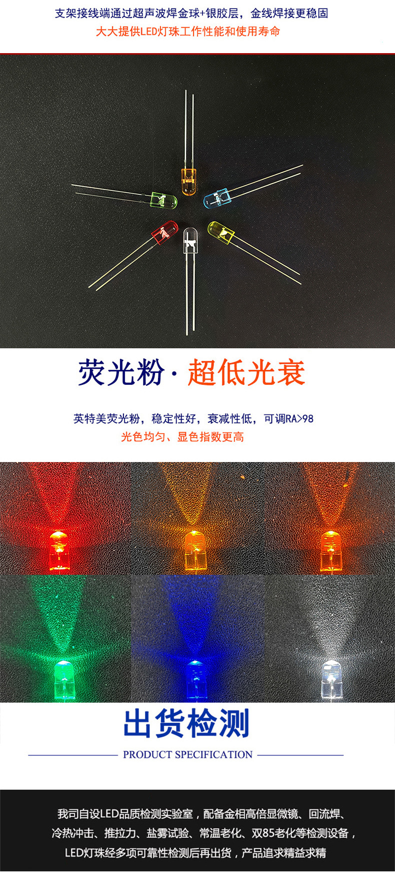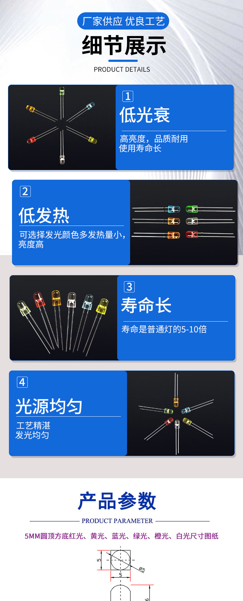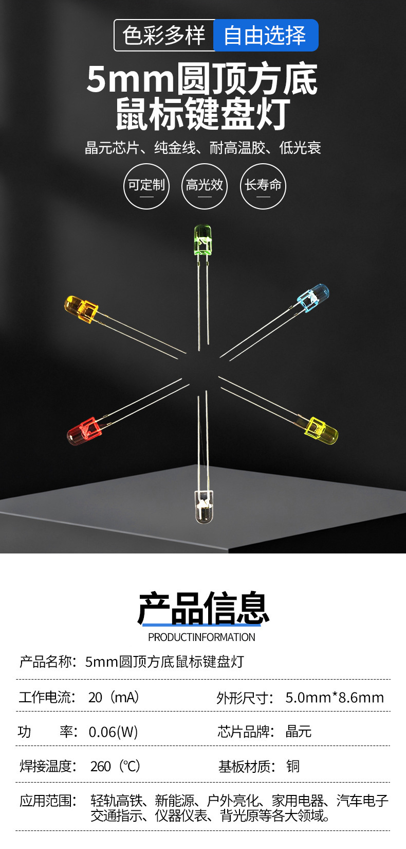 Номер товара F5 square light mechanical keyboard led lamp beads 5mm dome square bottom mouse light infrared 850nm reverse pole red light yellow light blue light green light orange light white light manufacturer