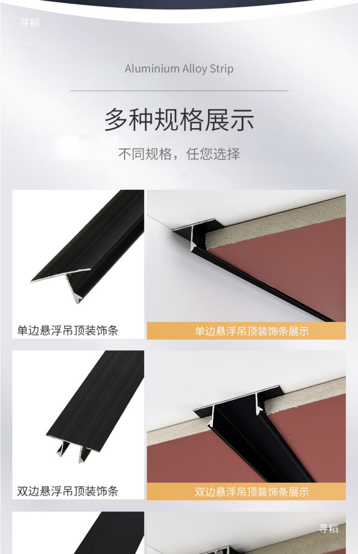 Планка для гипсокартонного потолка, линейный свет, U-образная алюминиевая планка