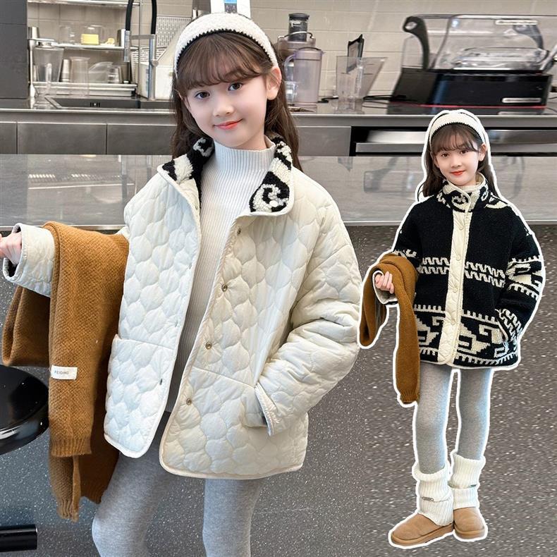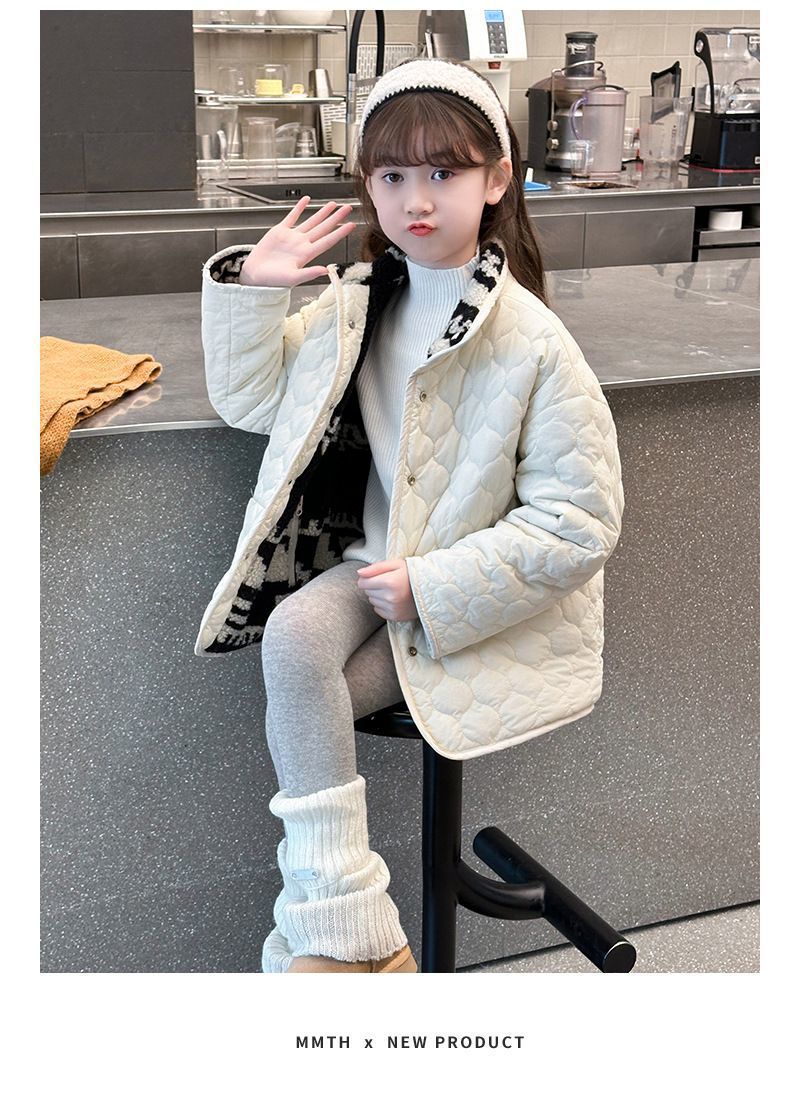 2025 осень-зима новая reversible одежда для детей для девочек среднего и пожилого возраста утолщенная хлопковая мягкая стеганая зимняя куртка