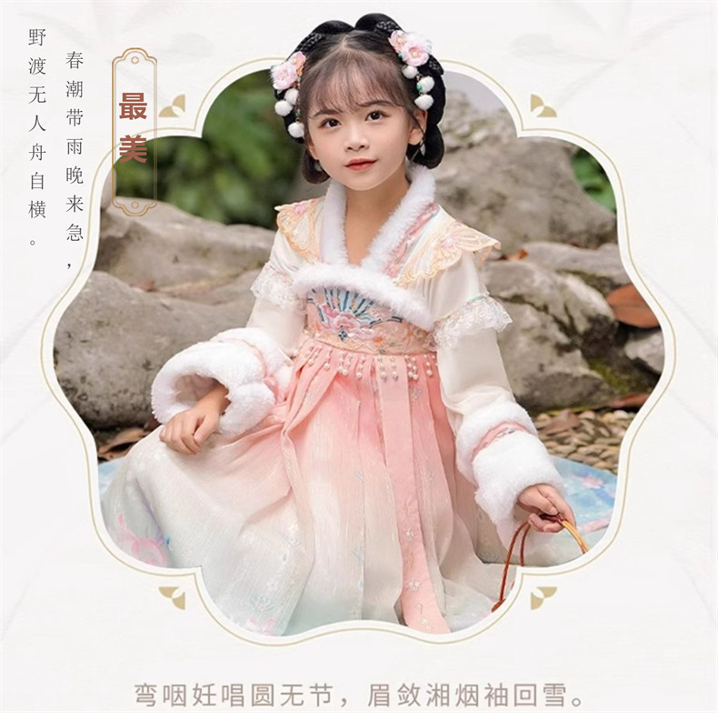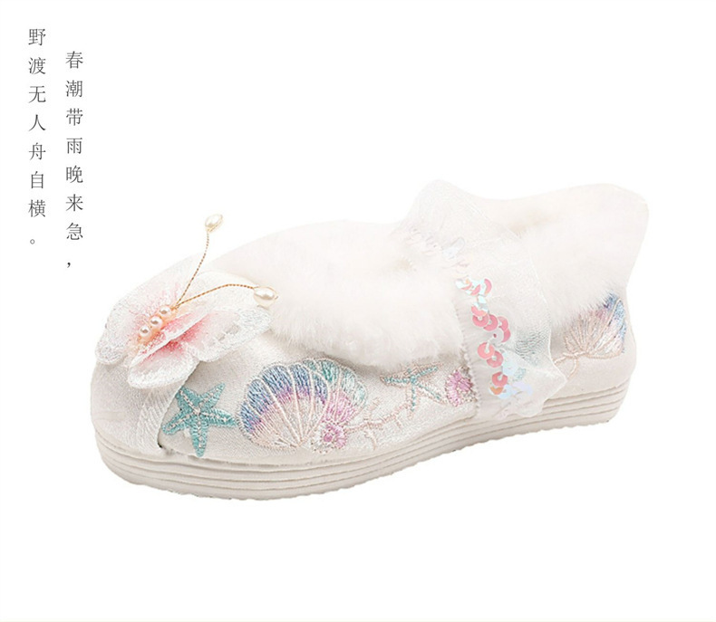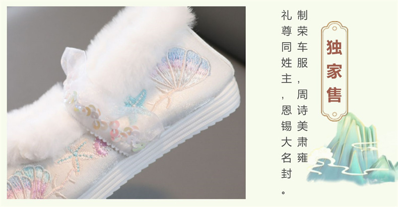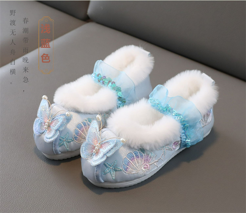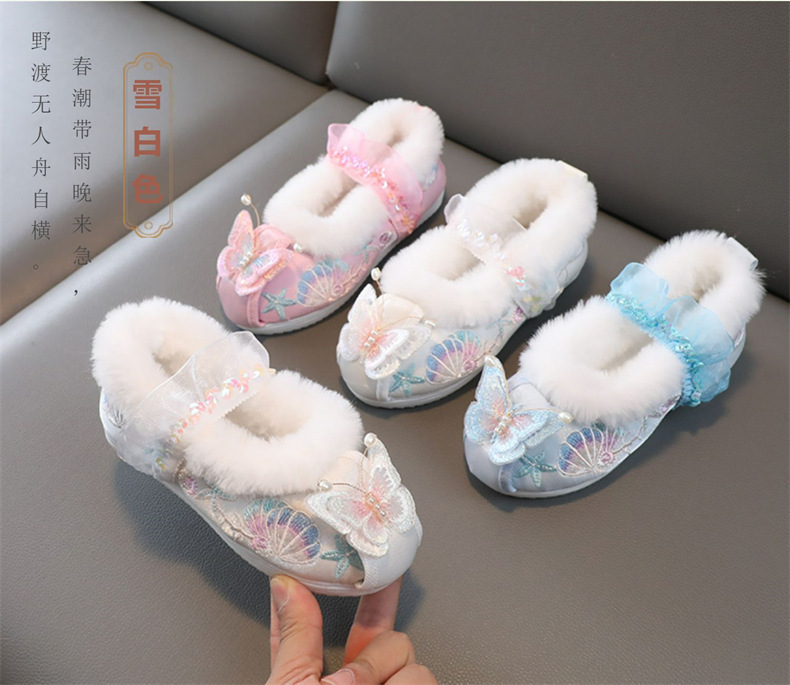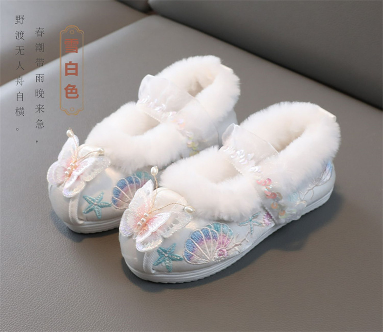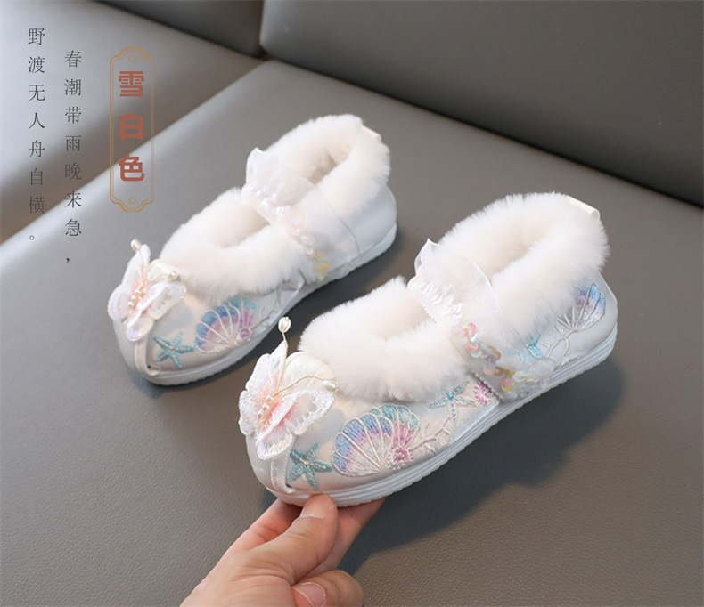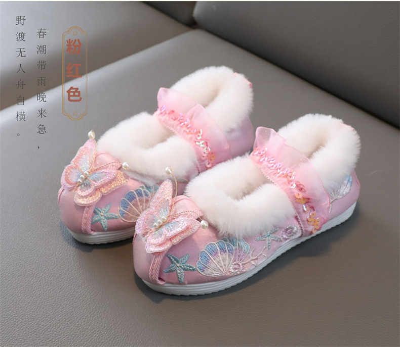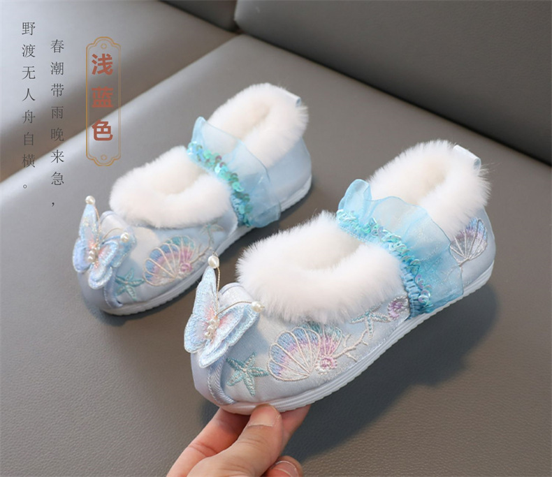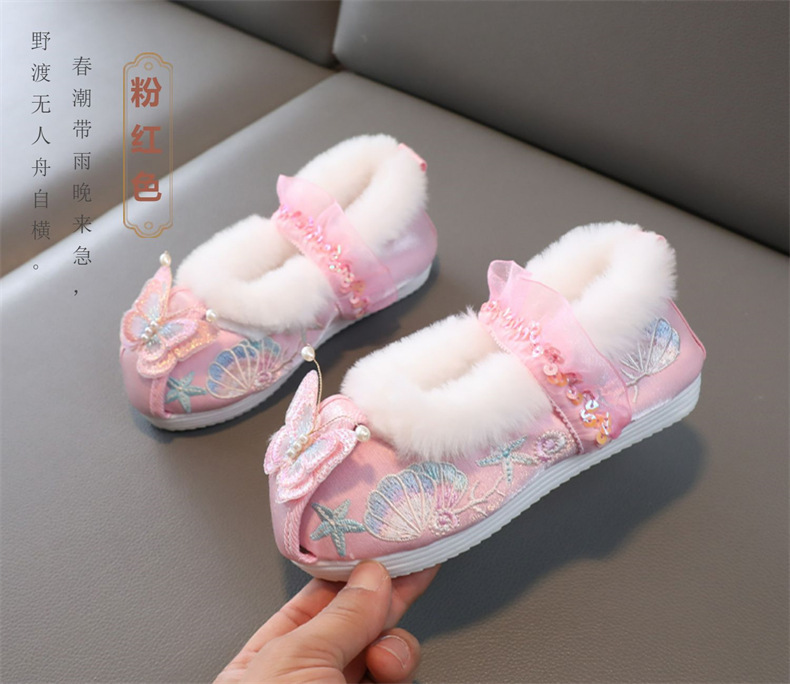 Традиционные китайские туфли для девочек на зиму, детские туфли ханфу с загнутым носом и плюшевой подкладкой, хлопковые туфли ханфу для девочек, новогодние туфли китайского стиля