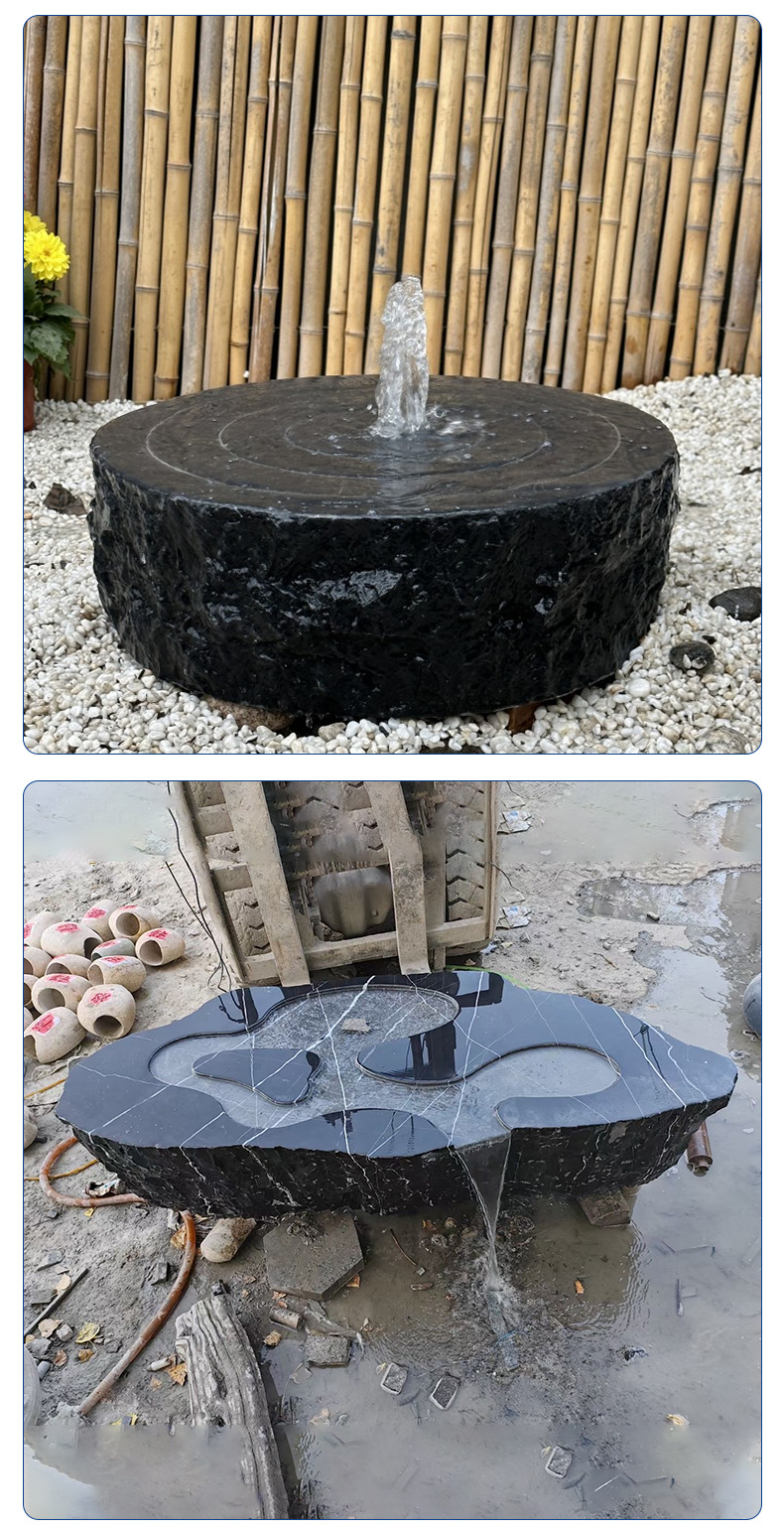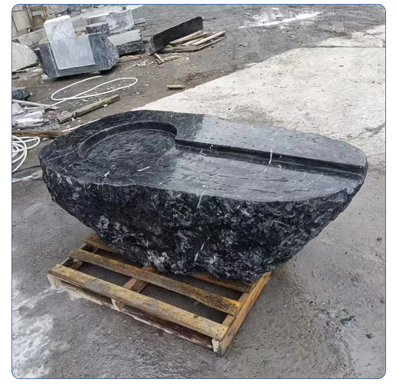 Природный черный горный камень, чаша для воды, самоподдерживающаяся рокария, японский стиль ландшафта, каменные украшения для двора