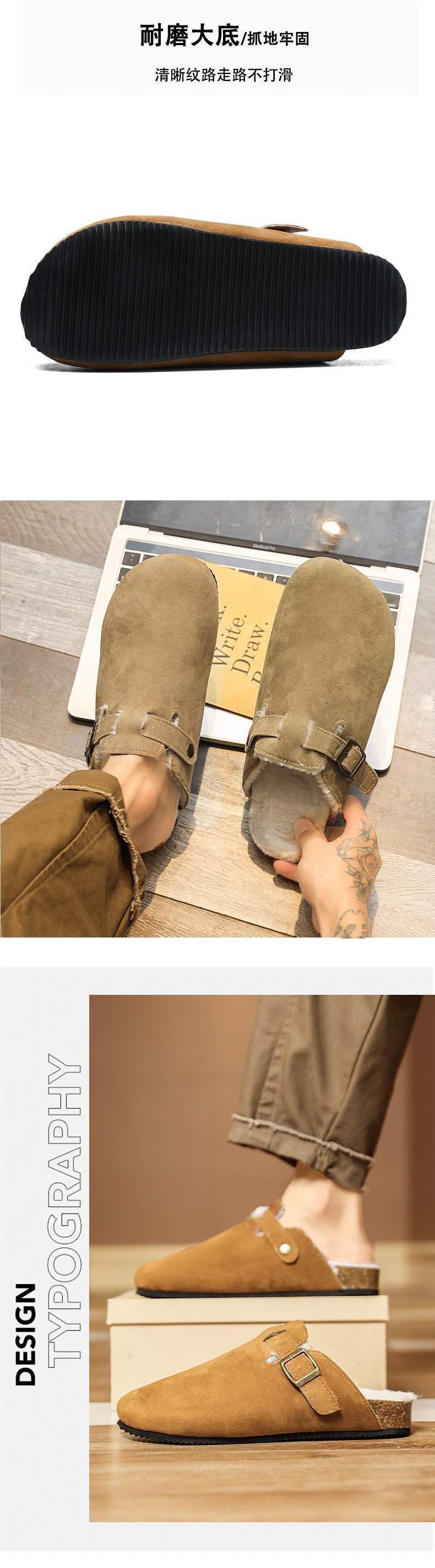 2025 Birkenstock Новые Мужские Тапочки с Пальцами для Пары на Выход Хлопковые Обувь Женские Полутеплые Тапочки с Флисом Осень и Зима