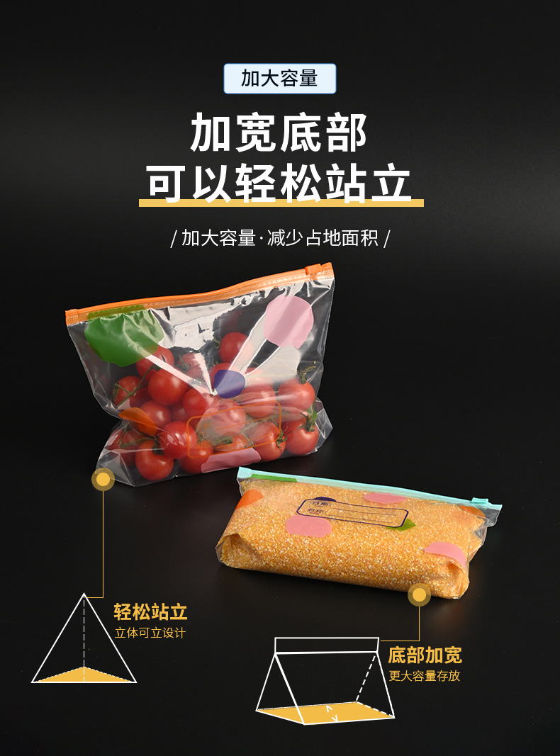Пакет для хранения продуктов, пищевой, герметичный, слайдер, самозакрывающийся, специальный пакет для холодильника