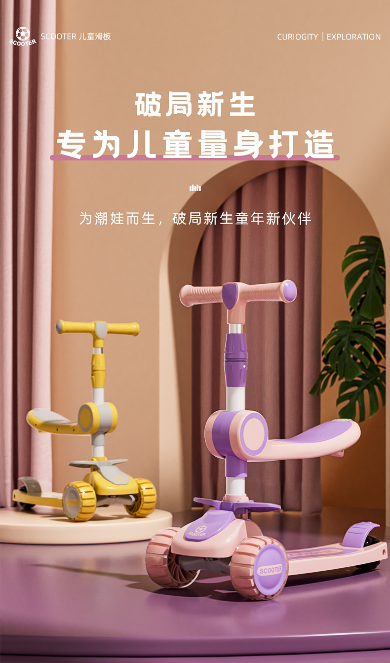 Новый самокат для детей 1-3-6-10 лет, трехв одном, для девочек и мальчиков