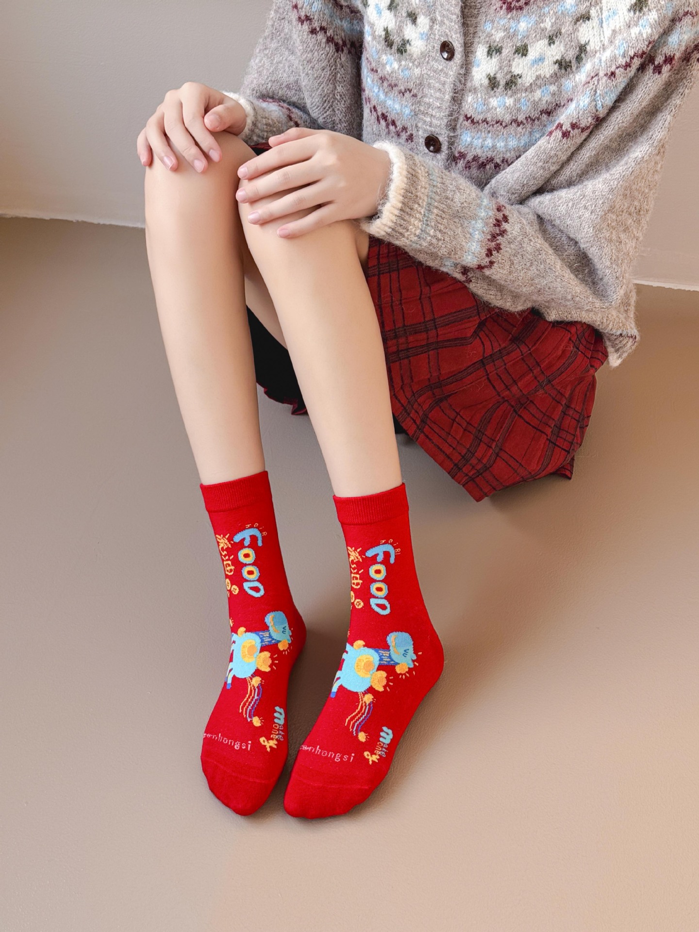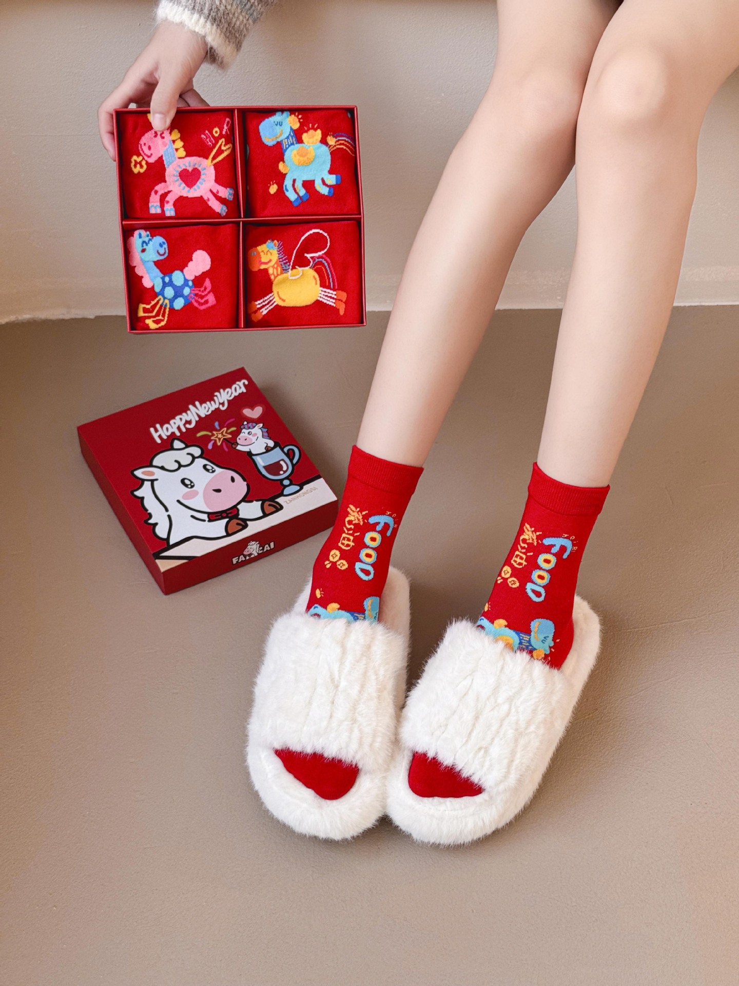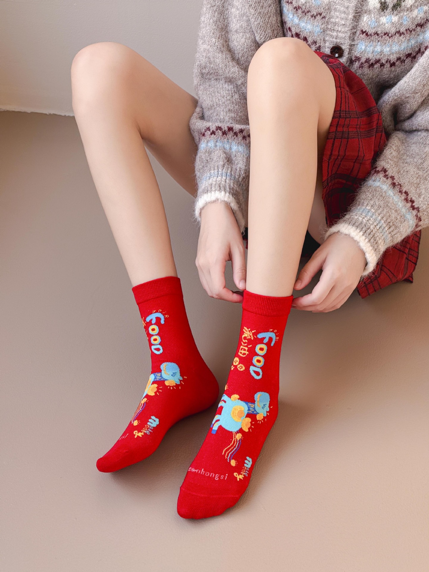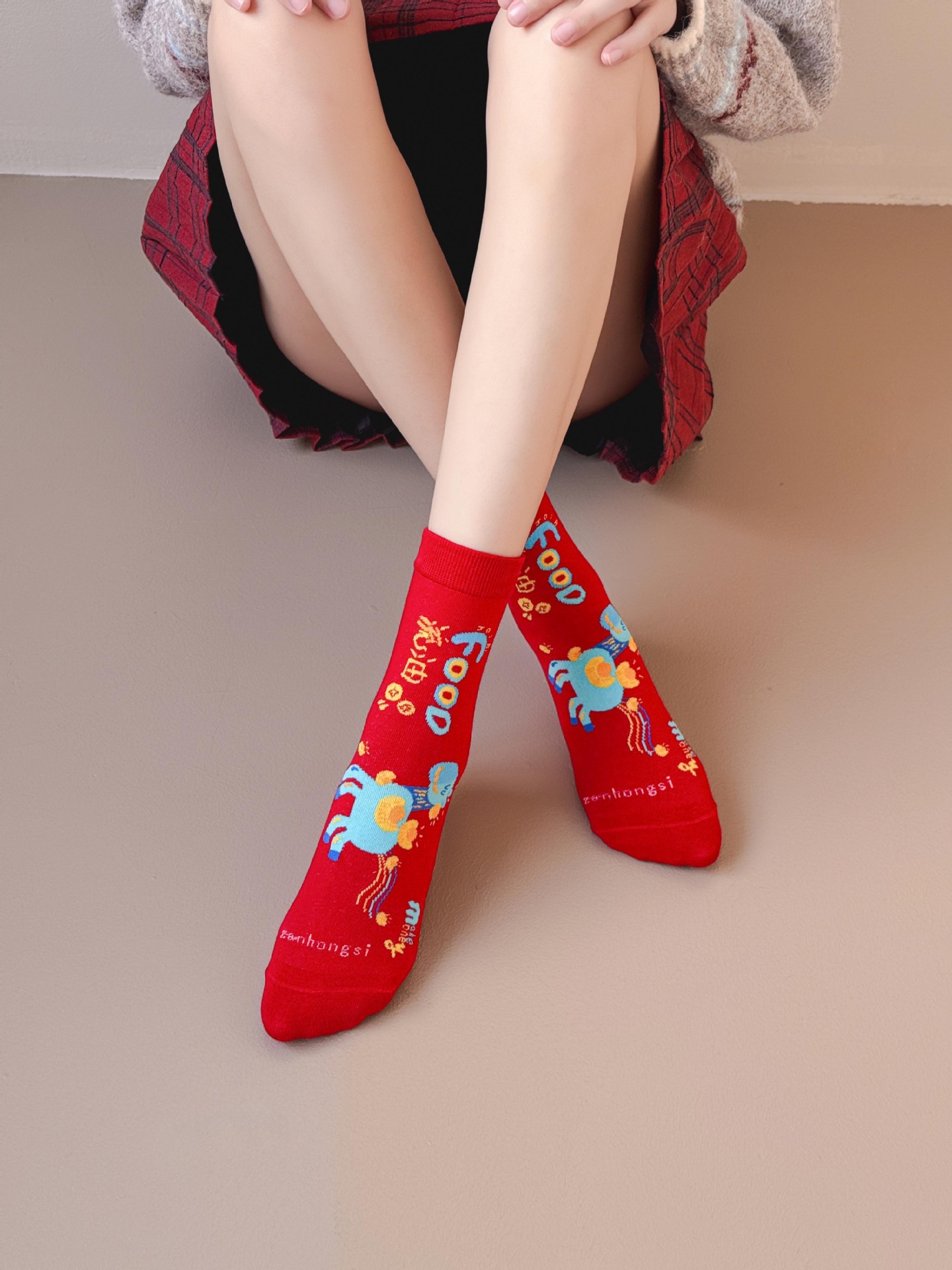 Носки 2026 года Лошади, красные носки, зодиакальные носки для женщин, мультяшные, милые, новогодние, удачные носки осени и зимы, тренд до середины икры
