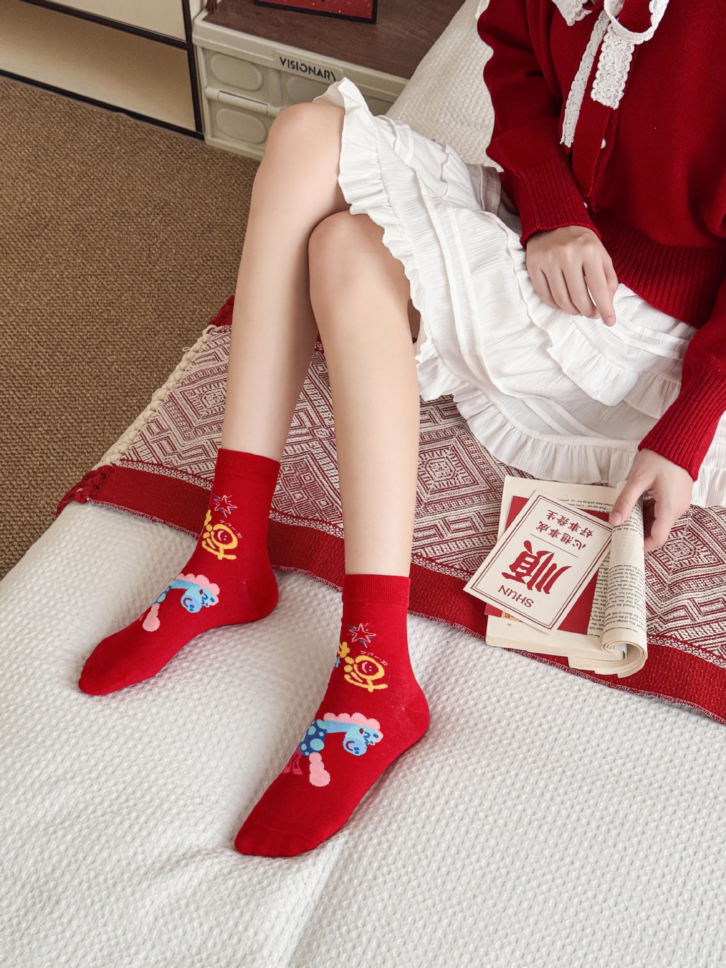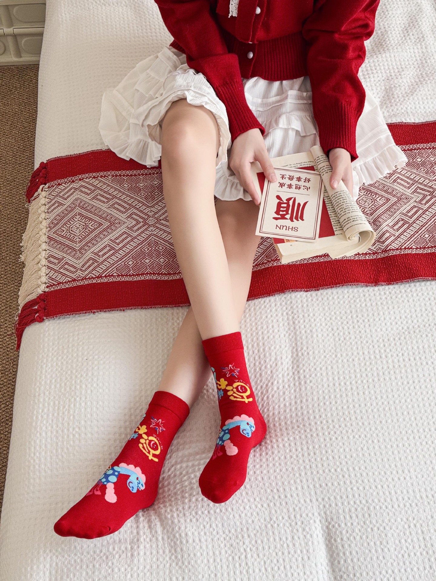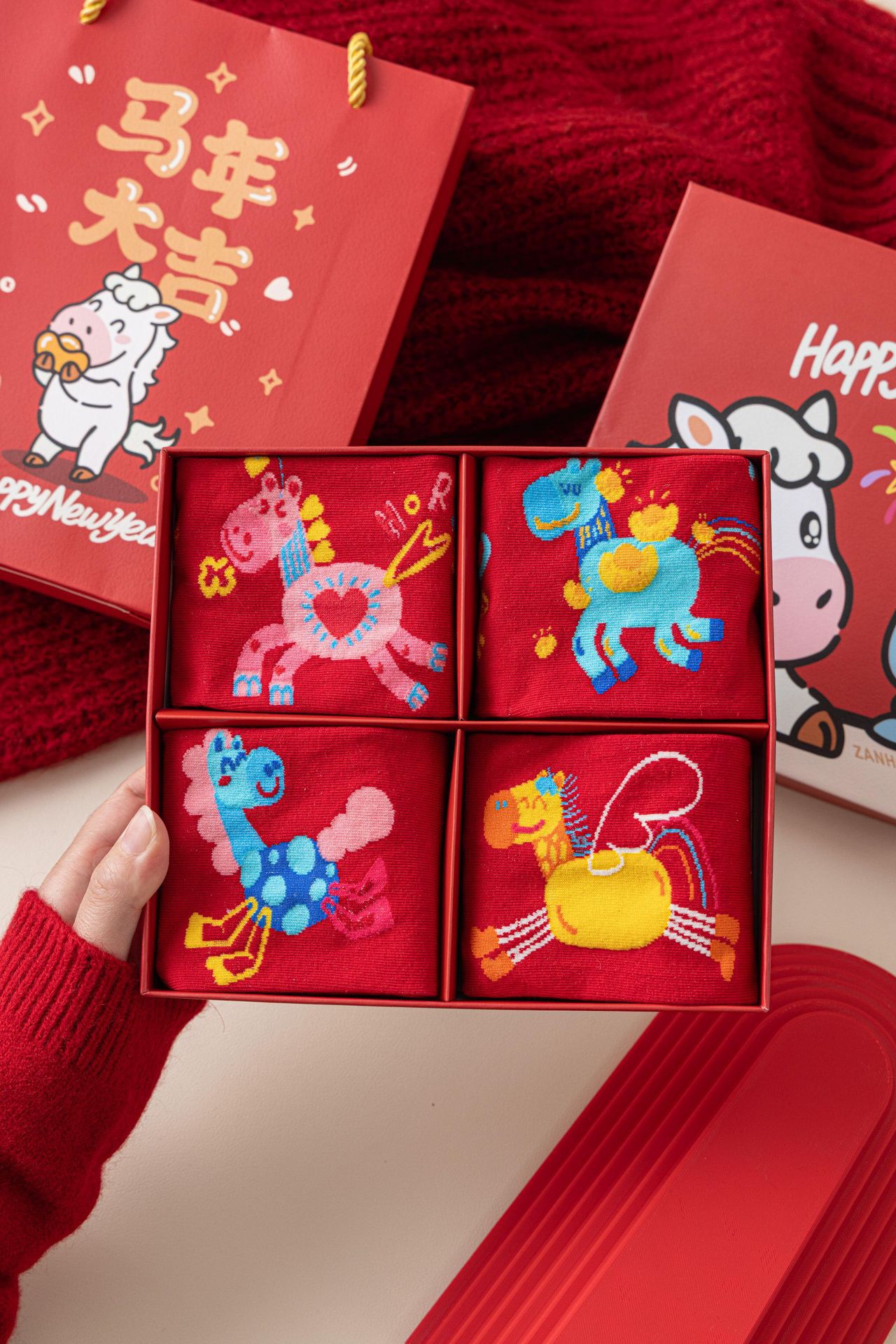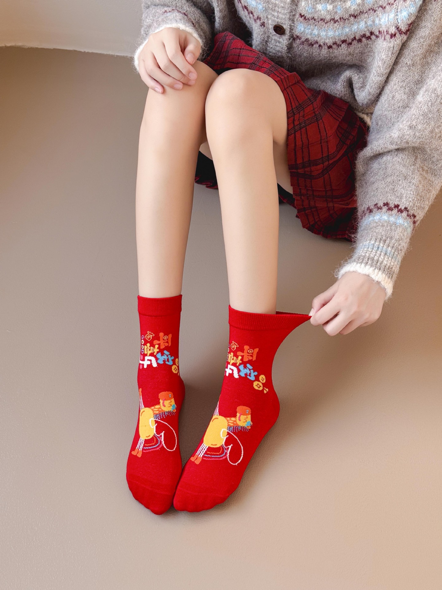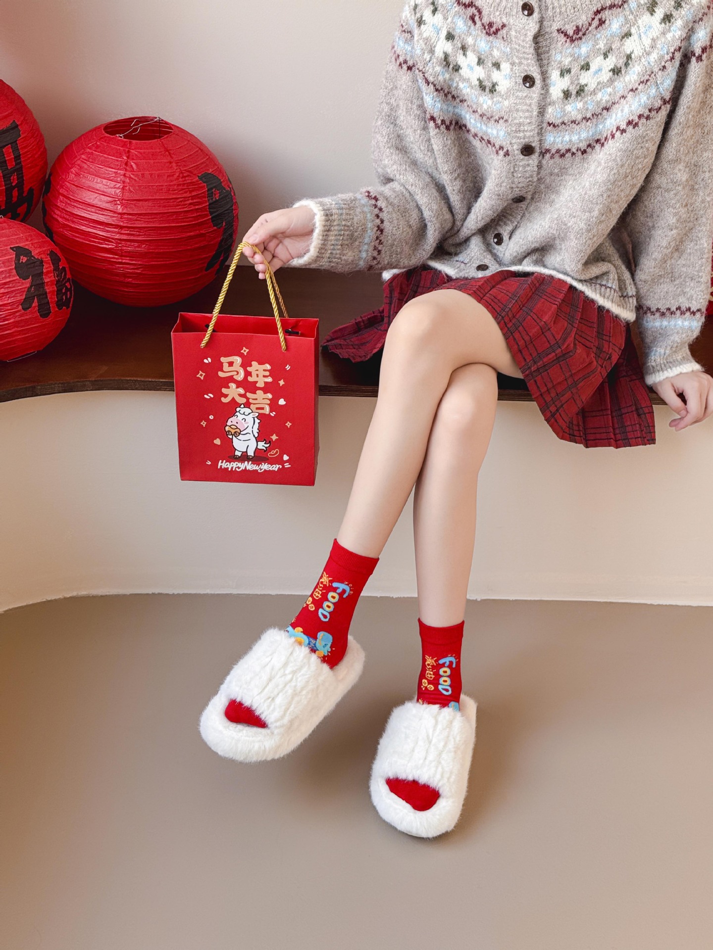 Носки 2026 года Лошади, красные носки, зодиакальные носки для женщин, мультяшные, милые, новогодние, удачные носки осени и зимы, тренд до середины икры