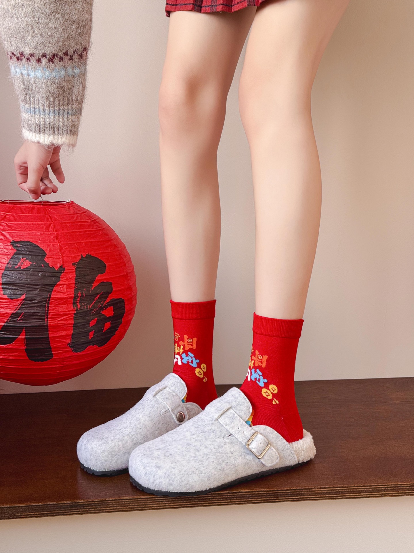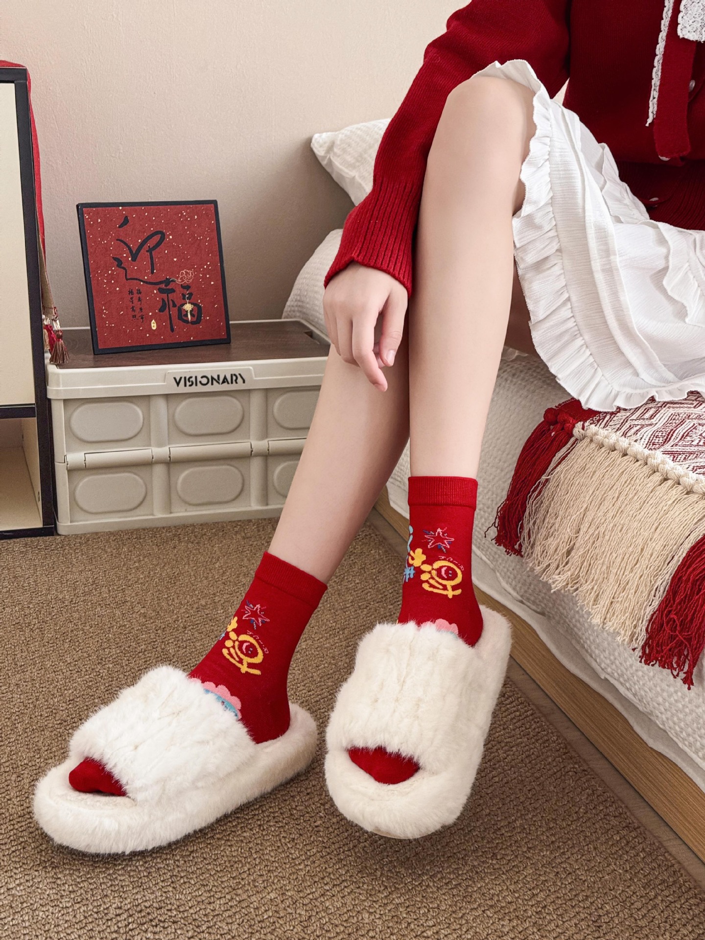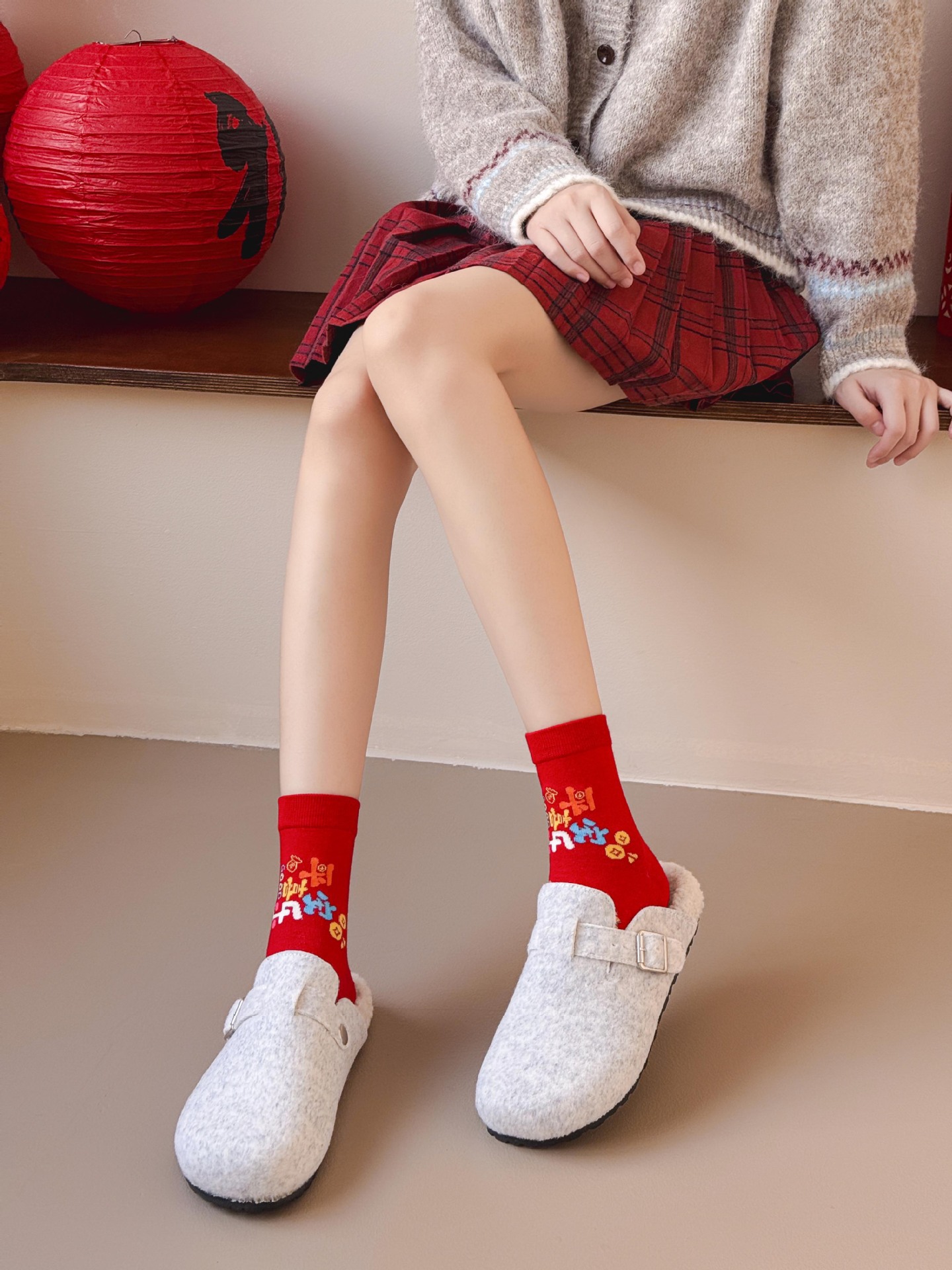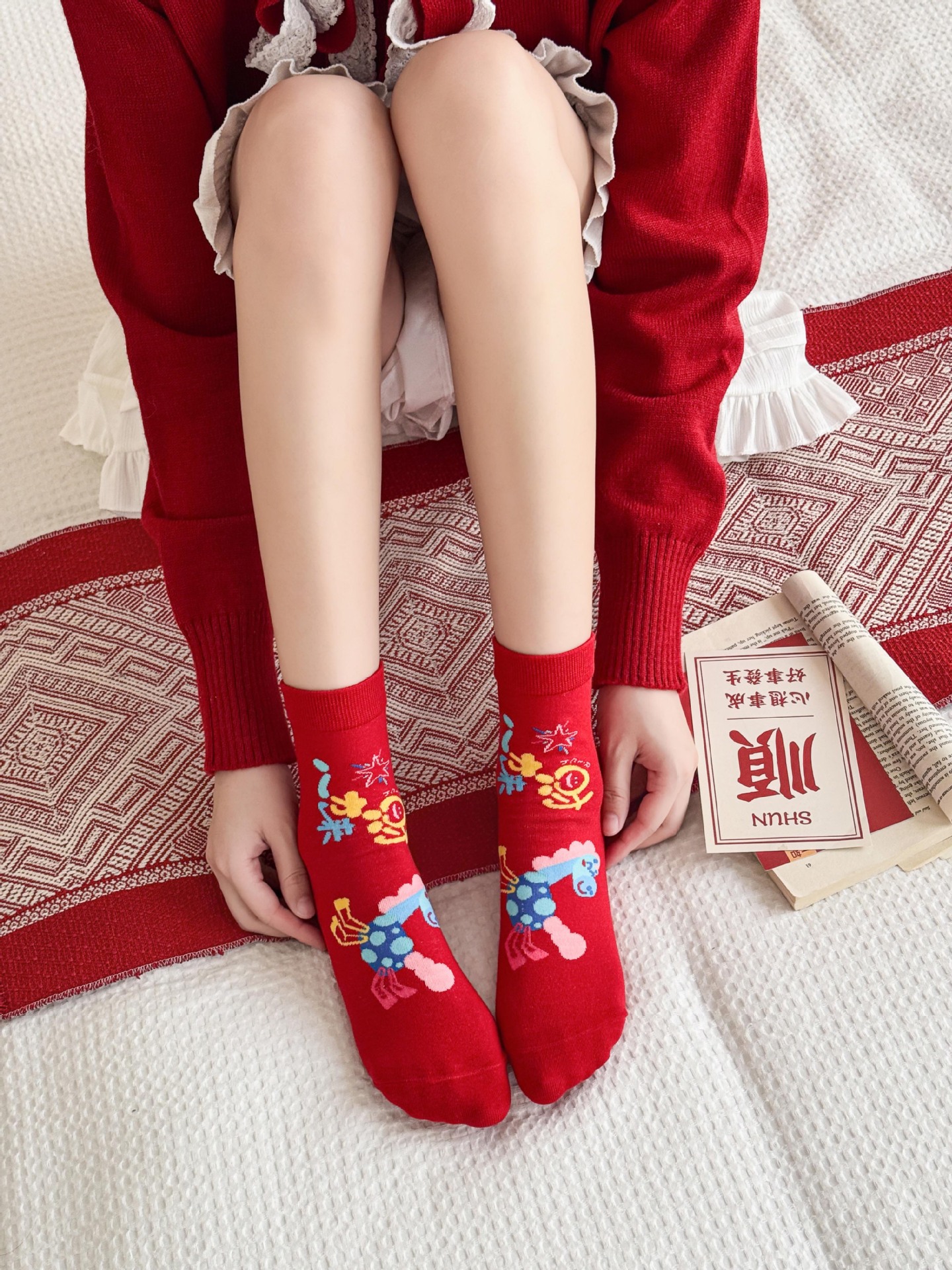 Носки 2026 года Лошади, красные носки, зодиакальные носки для женщин, мультяшные, милые, новогодние, удачные носки осени и зимы, тренд до середины икры