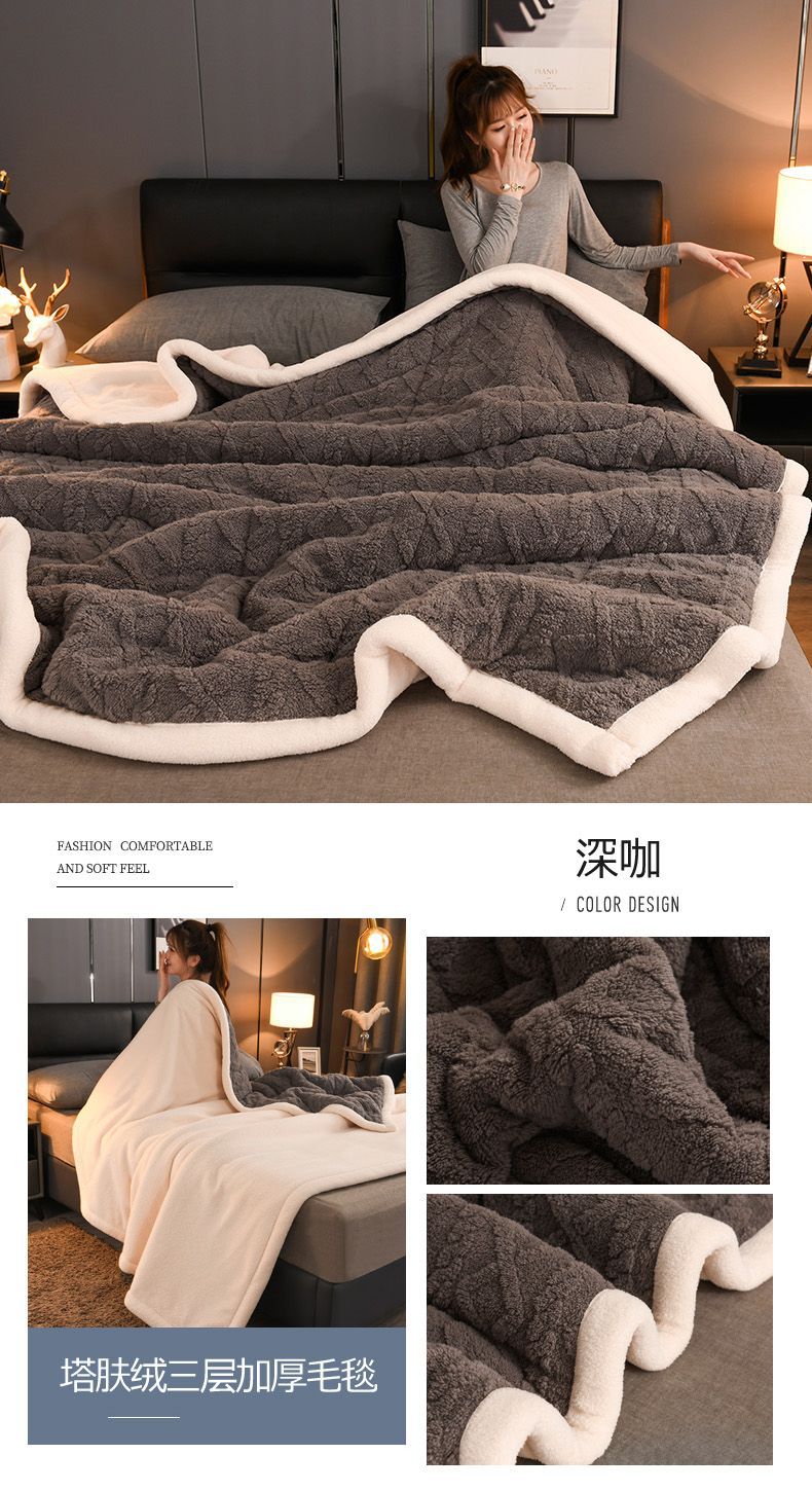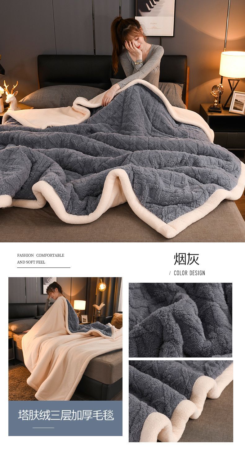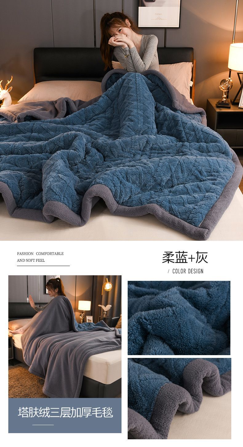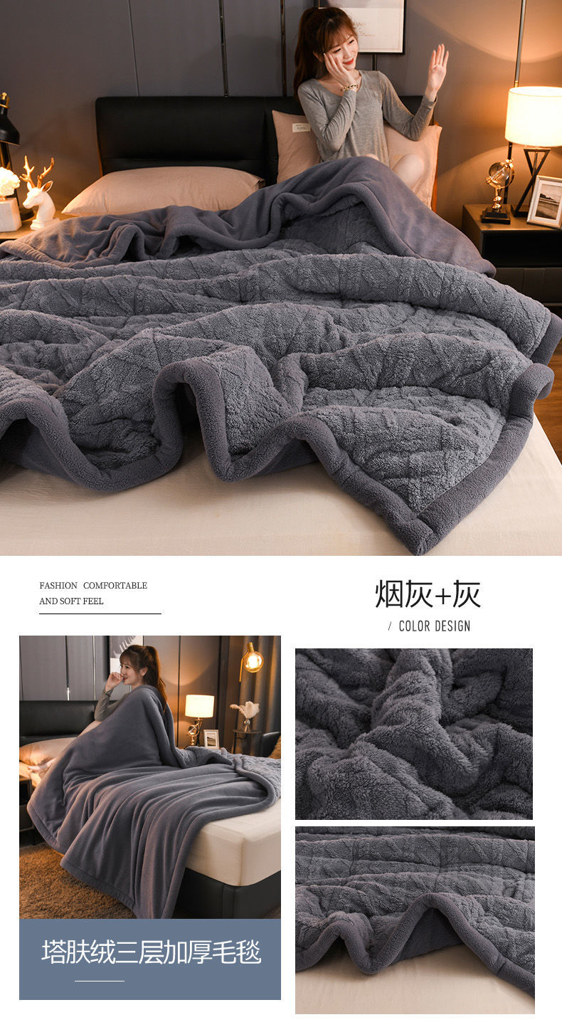 Трехслойное одеяло утолщенное зимнее одеяло коралловый ламовый велюр для общежития теплое двойное односпальное одеяло