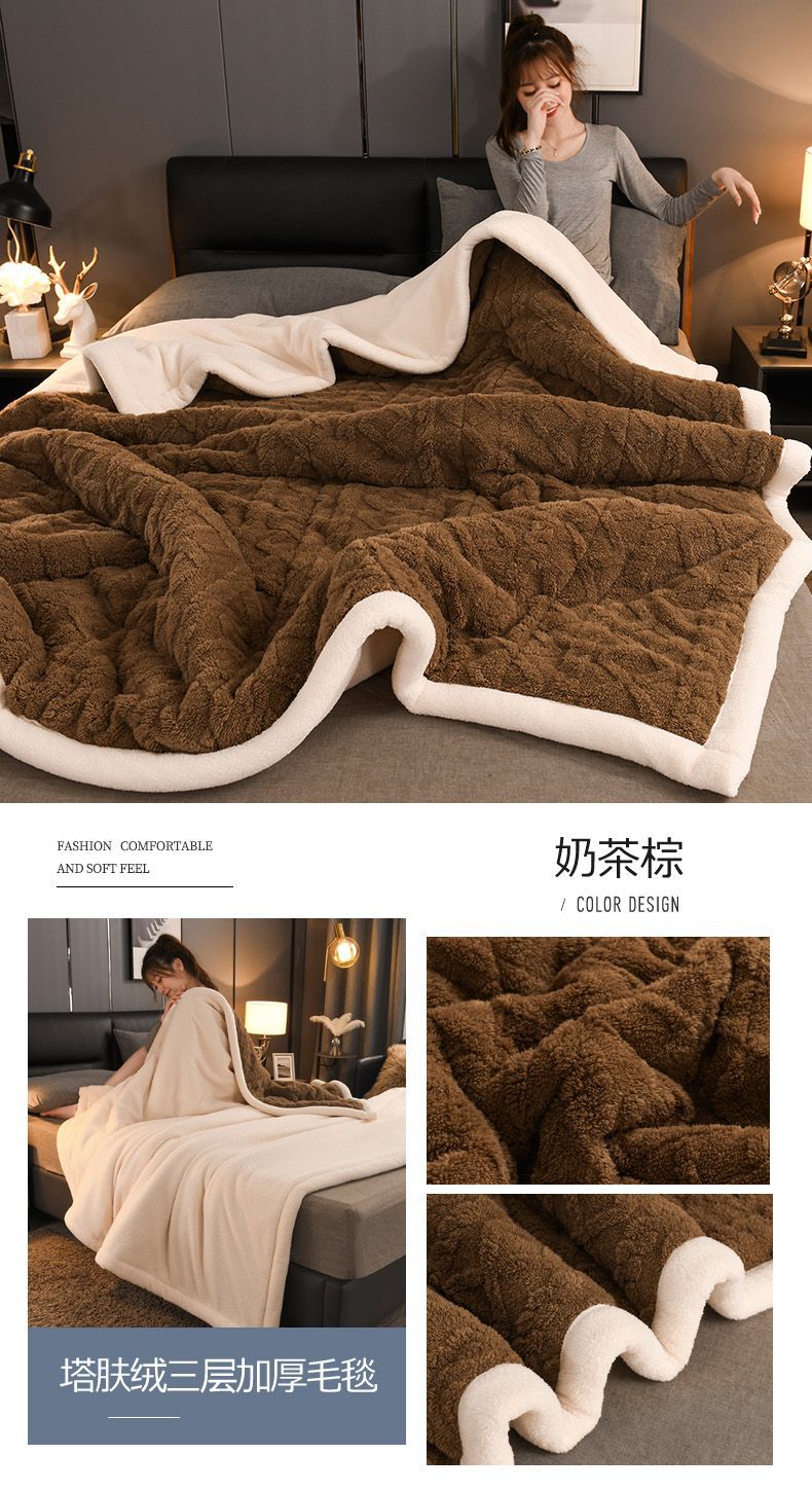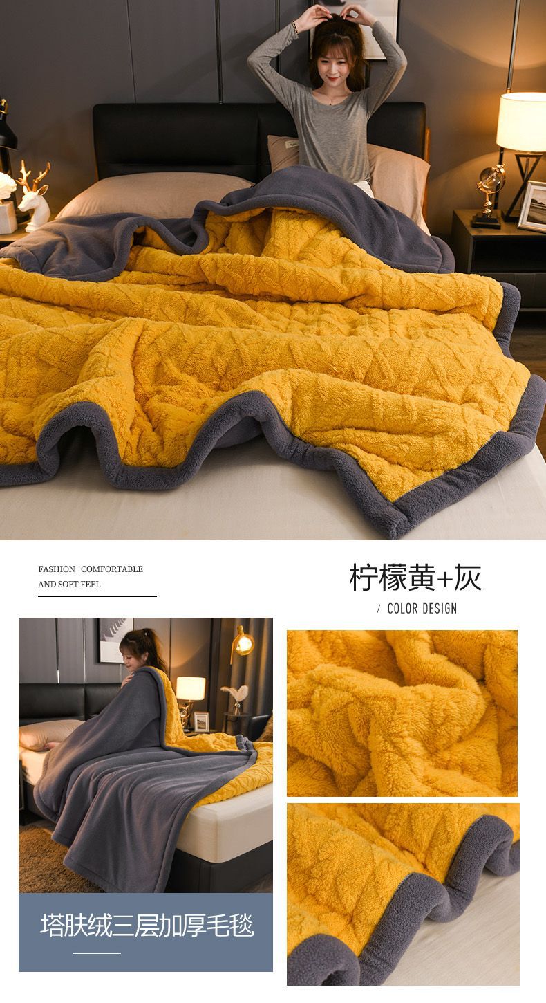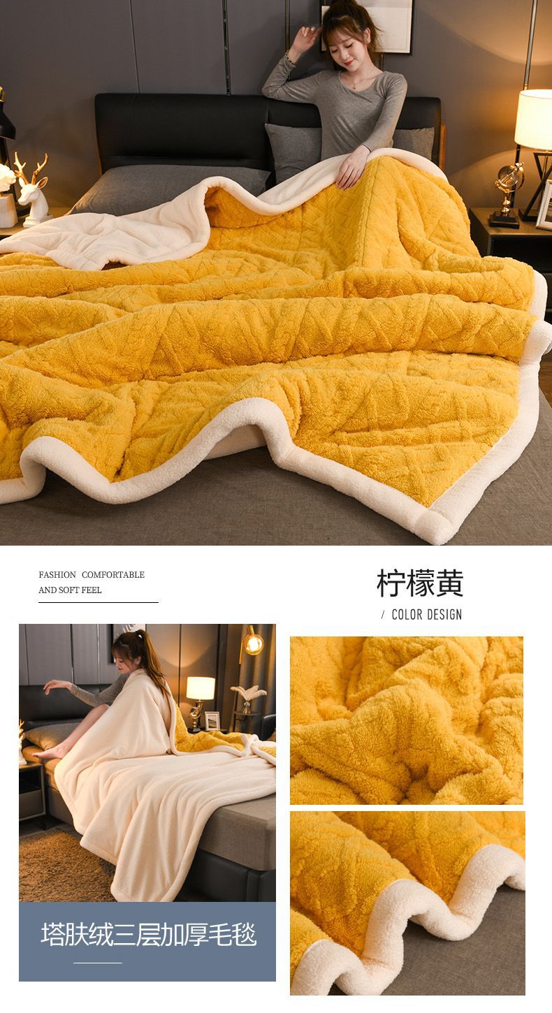 Трехслойное одеяло утолщенное зимнее одеяло коралловый ламовый велюр для общежития теплое двойное односпальное одеяло