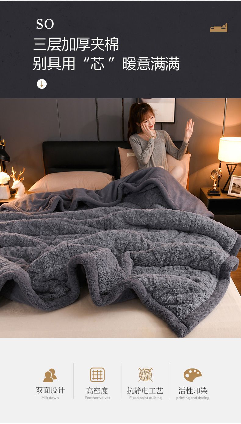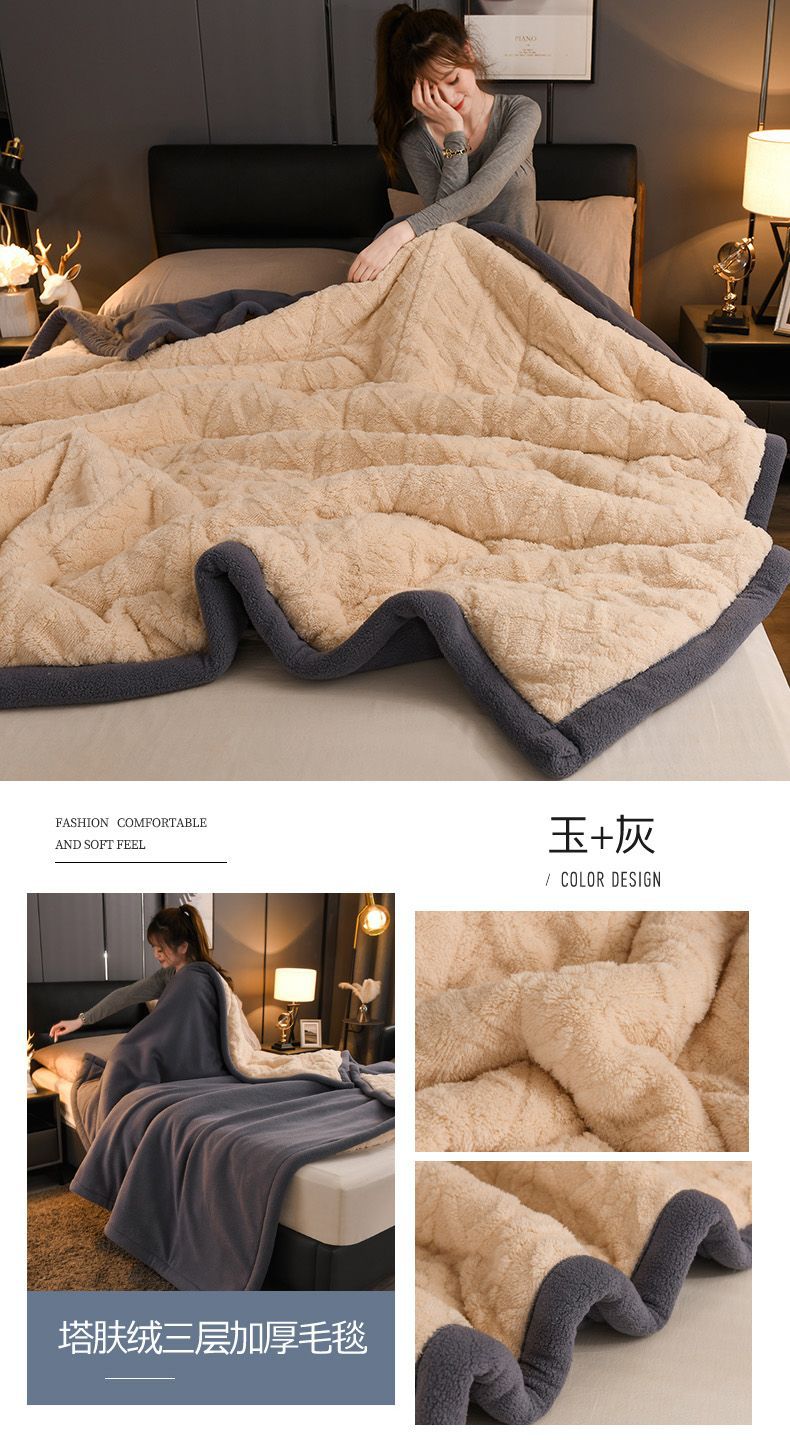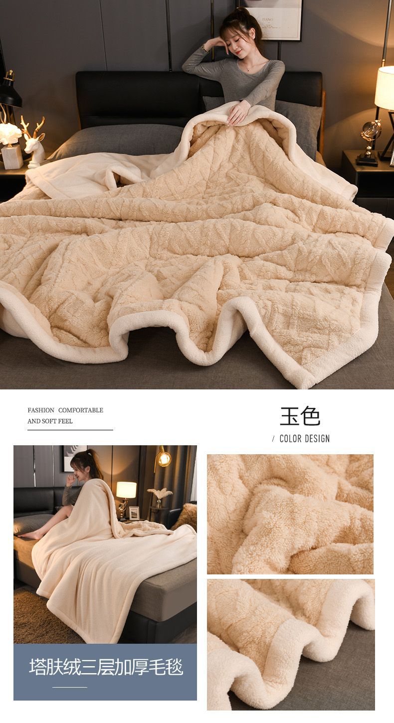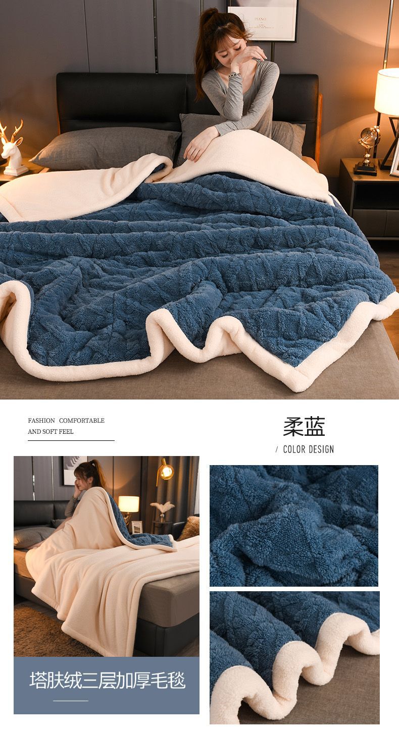 Трехслойное одеяло утолщенное зимнее одеяло коралловый ламовый велюр для общежития теплое двойное односпальное одеяло