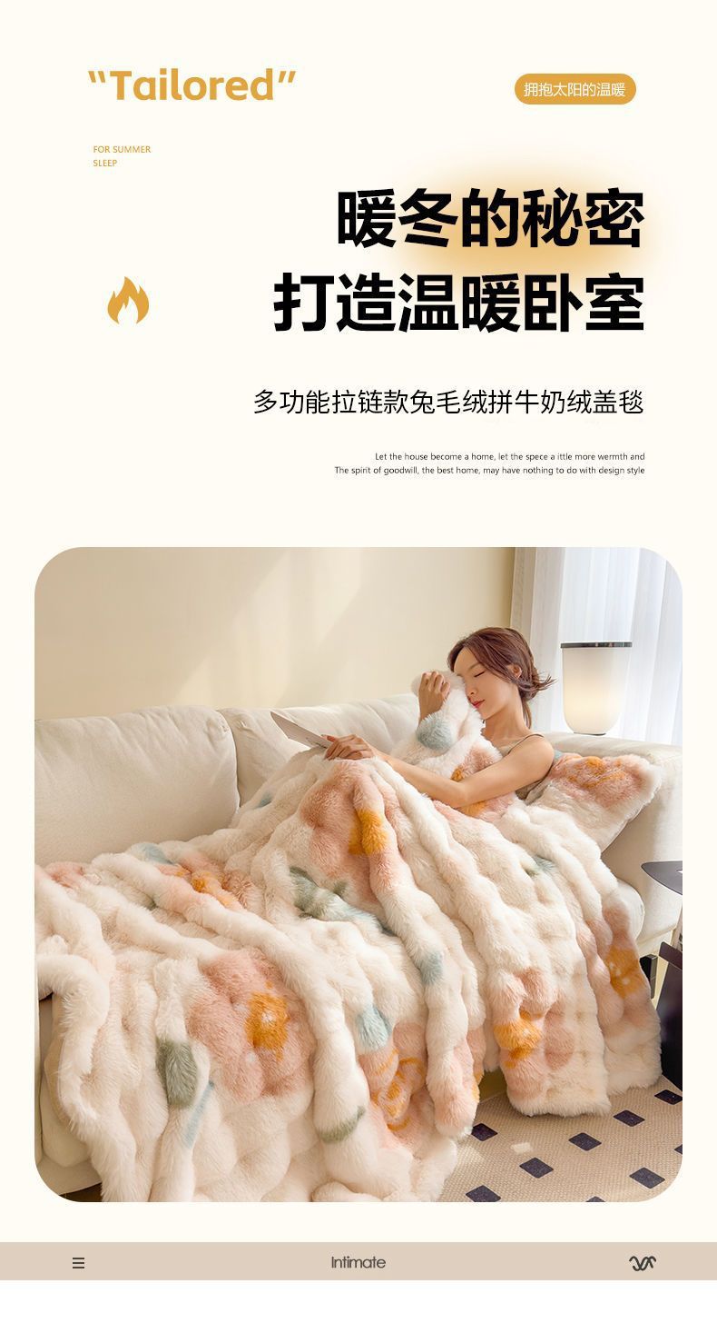 Пуховое одеяло с кроликом, зимнее, утолщенное, одеяло для сна в офисе, маленькое одеяло, повседневное коралловое бархатное одеяло для дивана