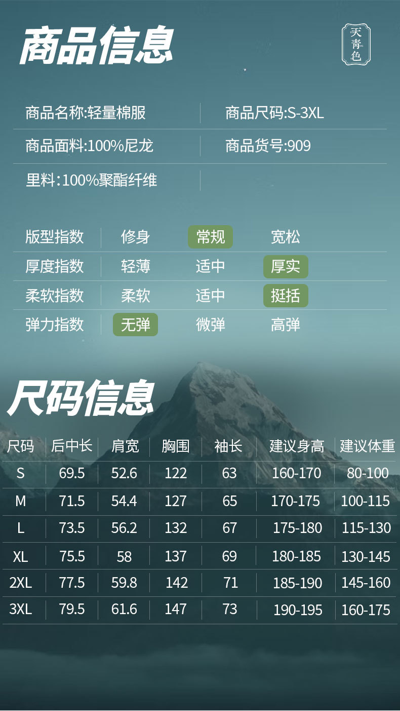 ![]() | Tianchi blue | M(52.5-65kg) | 2шт: ¥198.00, 30шт: ¥188.00, 300шт: ¥178.00 | 8853 | 6165820447237 | |