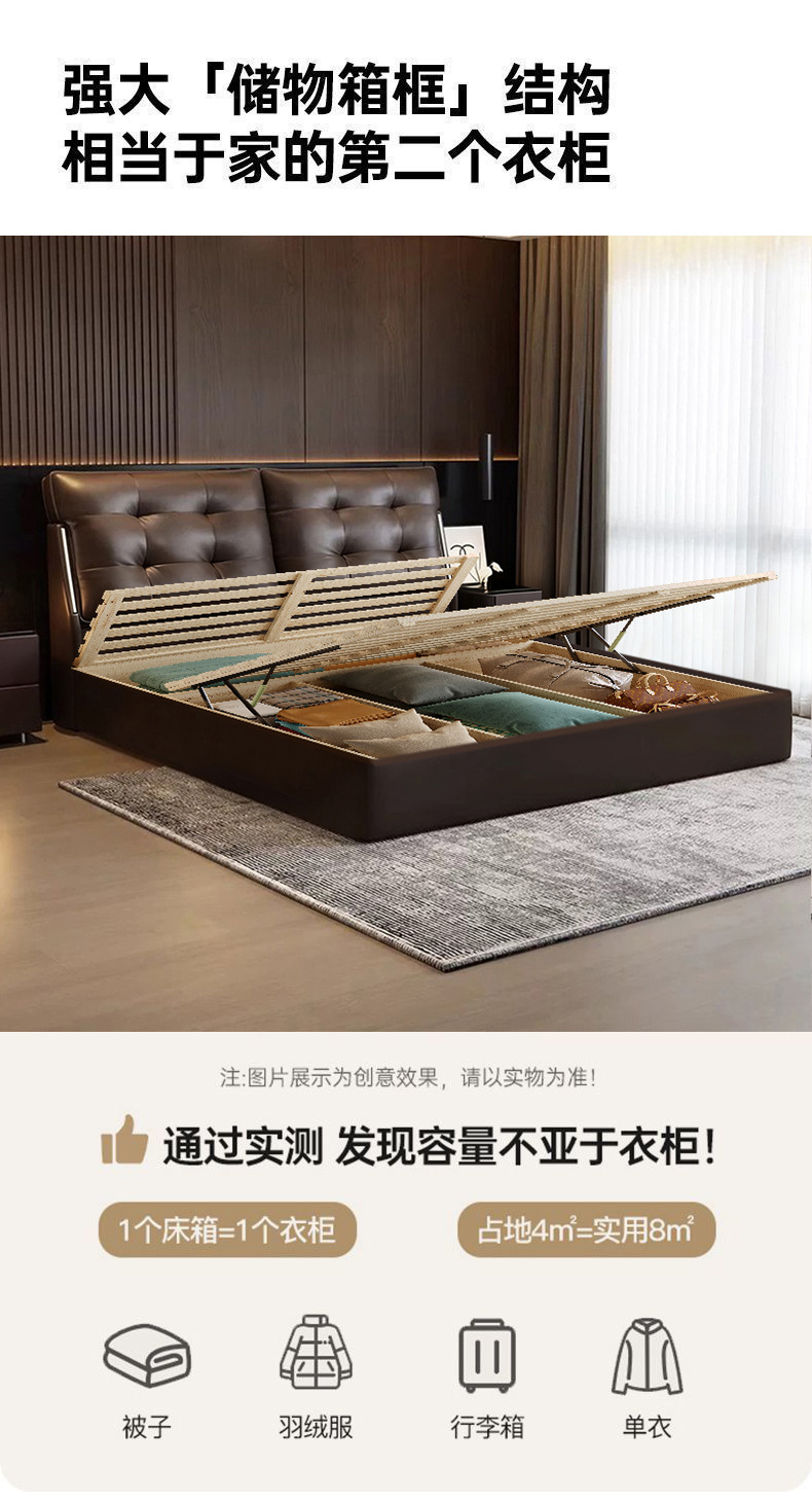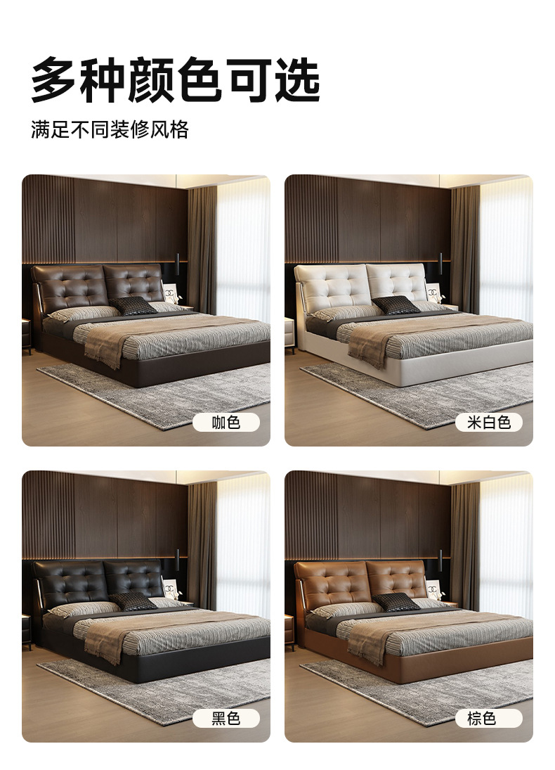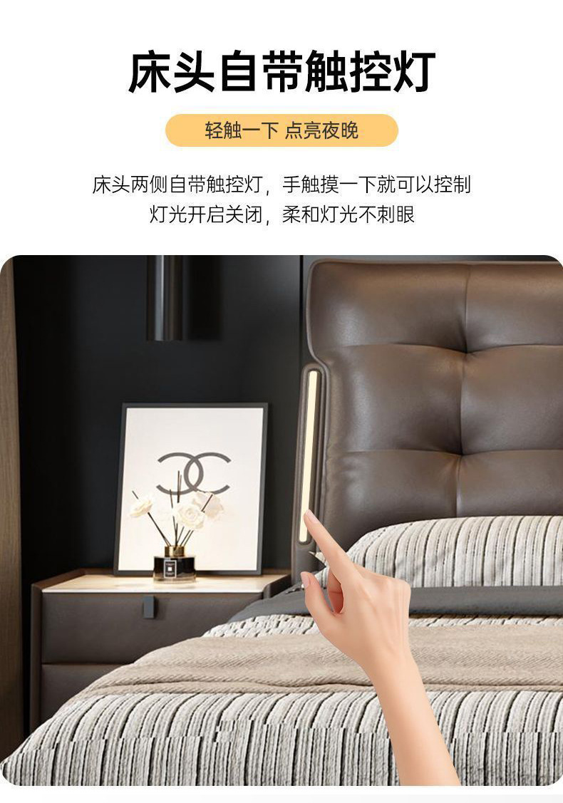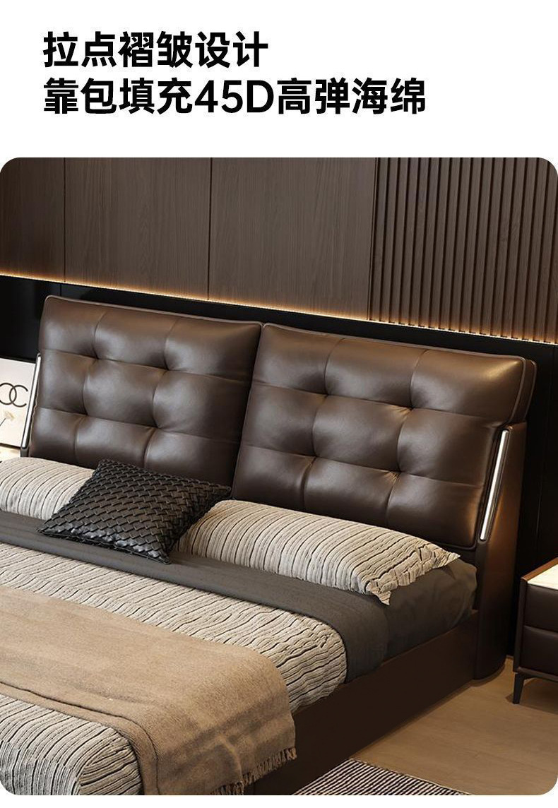 Современная минималистичная кожаная кровать черная 1.8м с ночником, нубуковая кожаная свадебная кровать, мягкая упаковка, популярная кровать с хранением для спальни